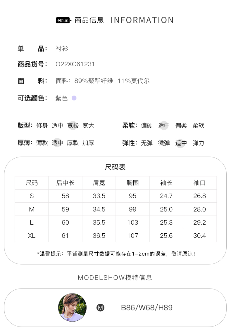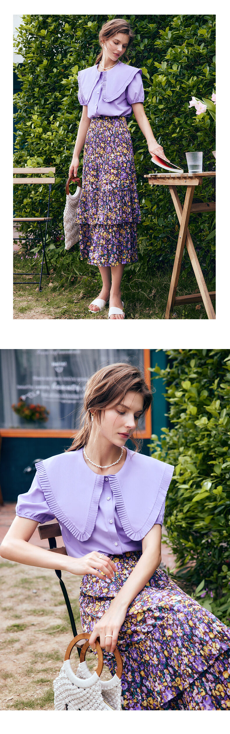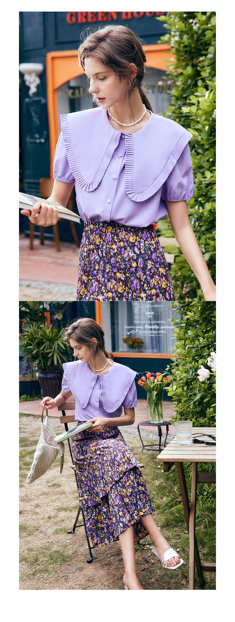 欧芮儿OLrain法式娃娃领紫色衬衫女夏季2022新款宽松泡泡袖衬衣
