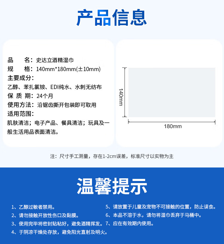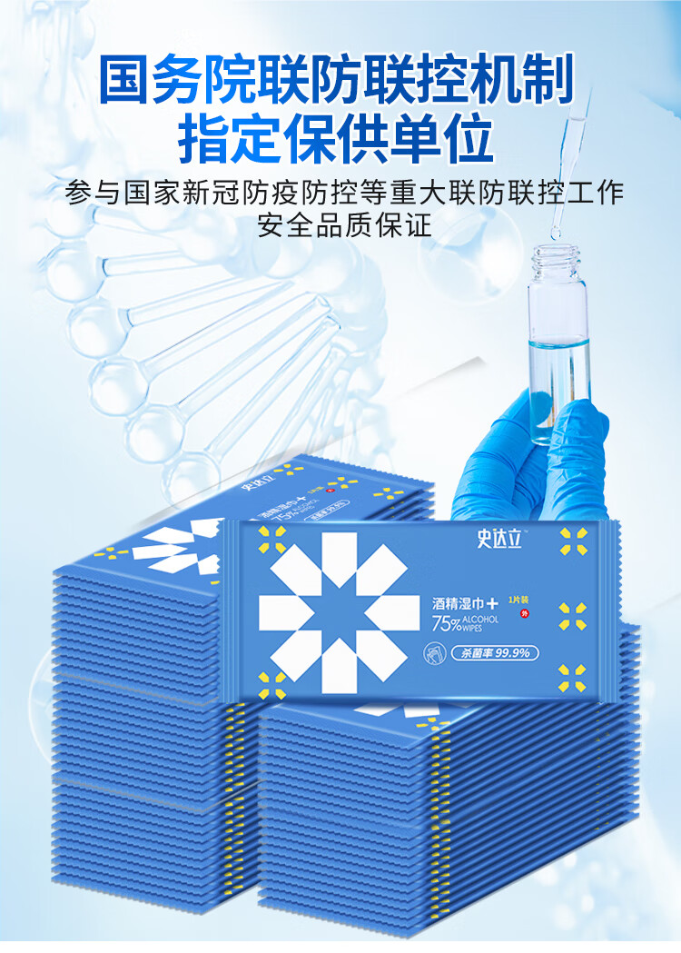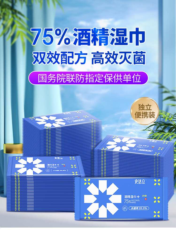 史达立 75%酒精湿纸巾100片单片独立装便携 酒精湿巾消毒湿巾 学生儿童家用外出替代免洗洗手液一次性湿巾纸