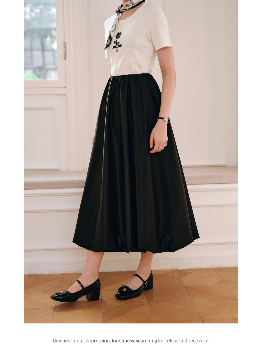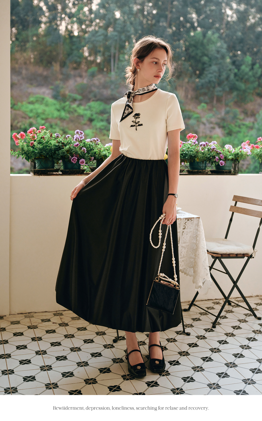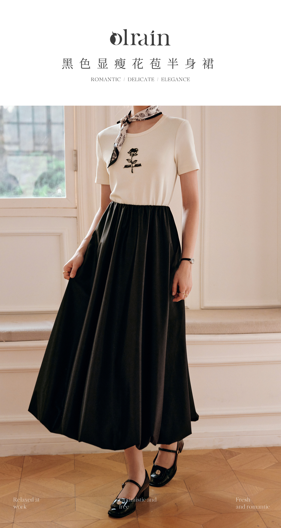 OLrain欧芮儿黑色显瘦花苞半身裙女夏季2025新款A字高腰西装裙子