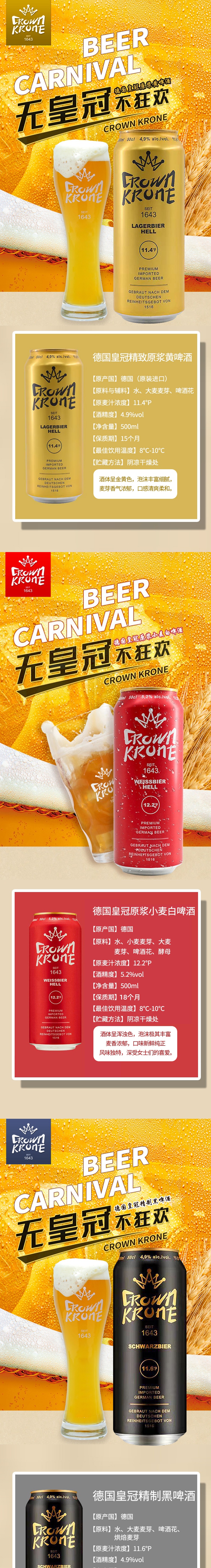德国进口德国皇冠小麦|原浆黄啤|黑啤啤酒500ml*24【箱】