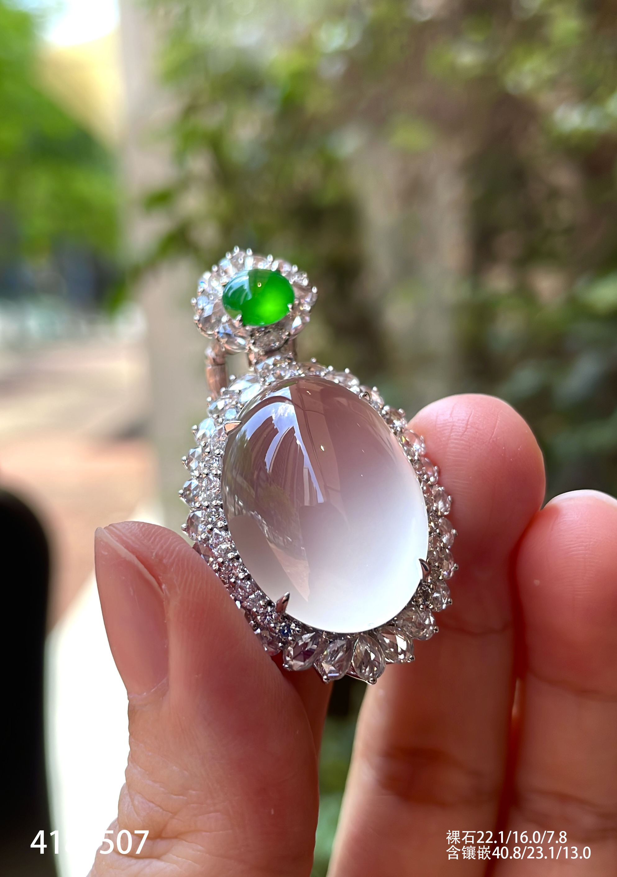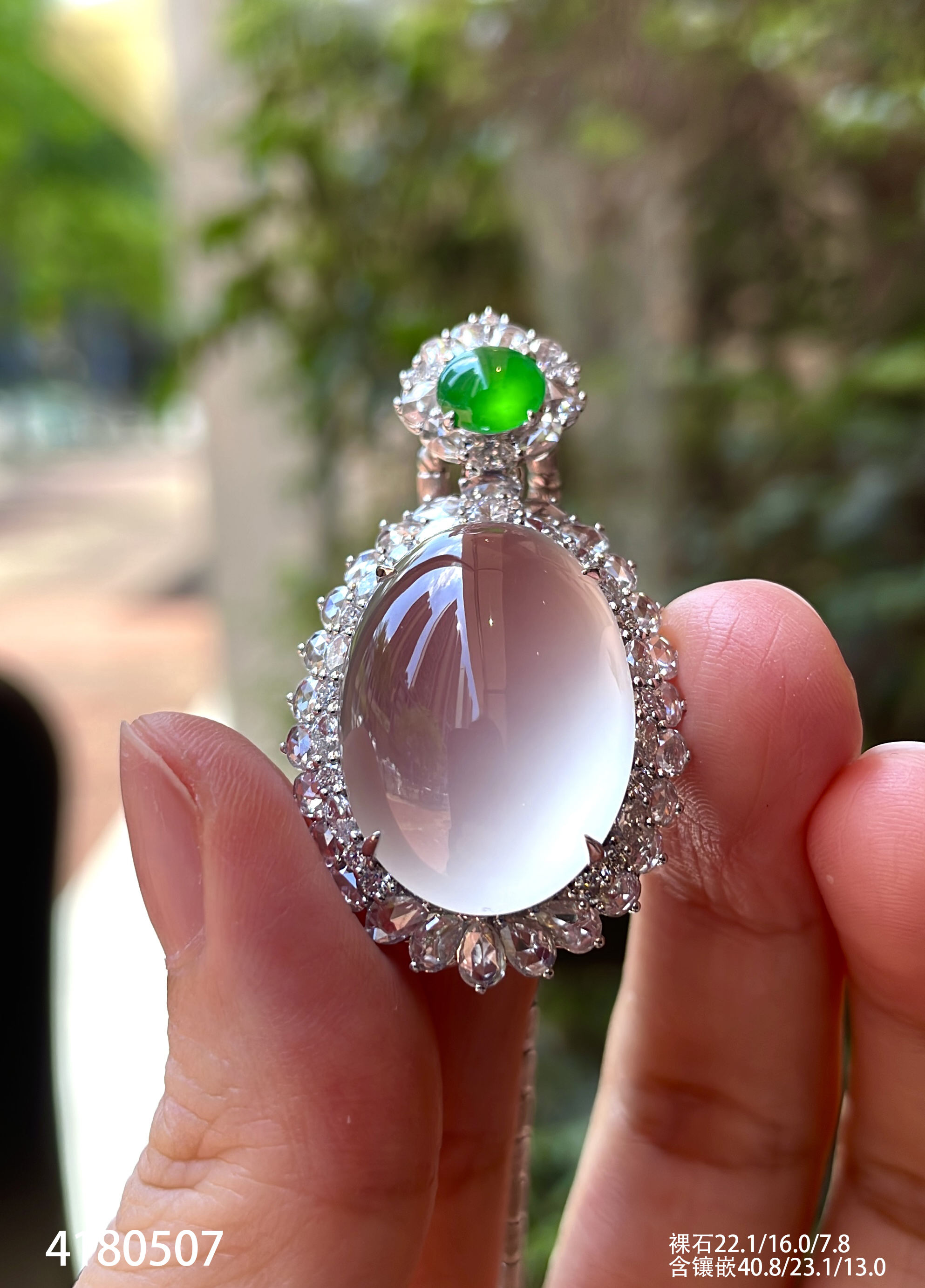 玻璃种蛋面吊坠【4180507】具体价格微信咨询
