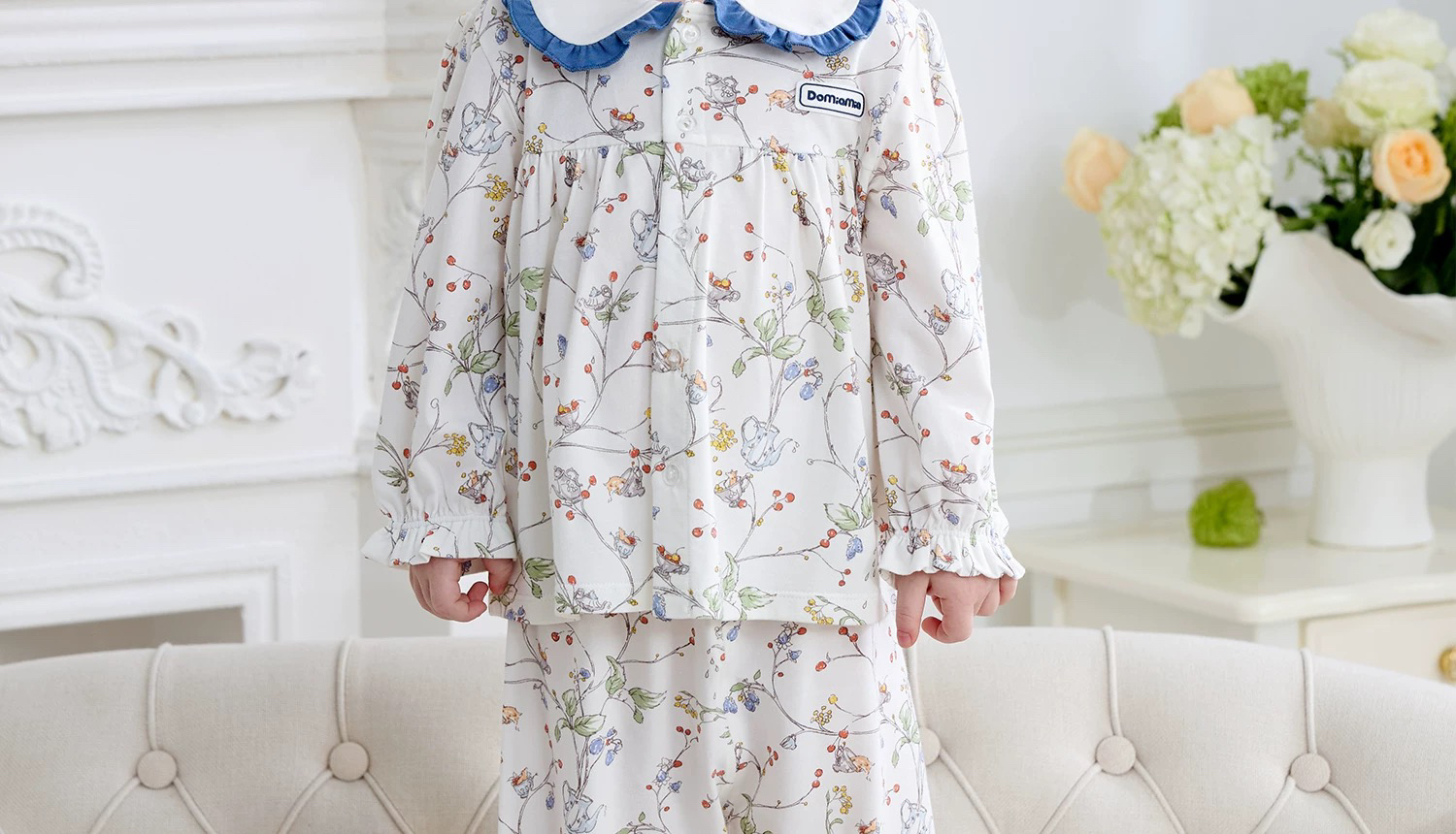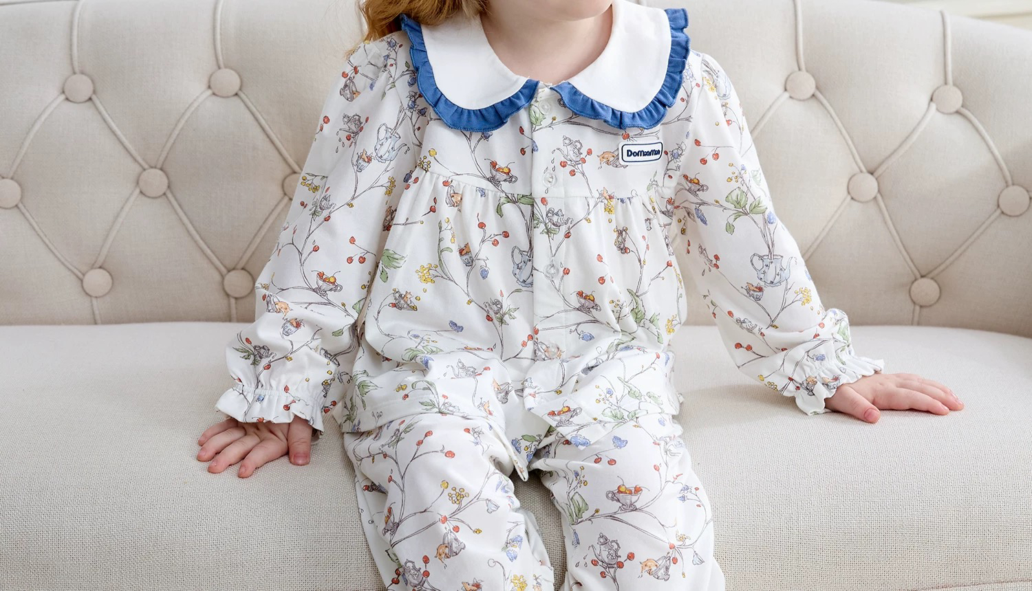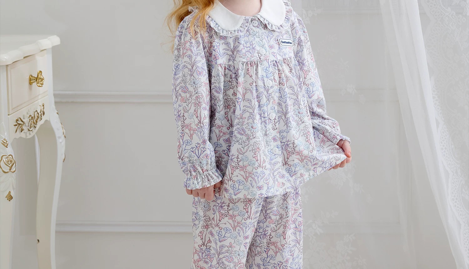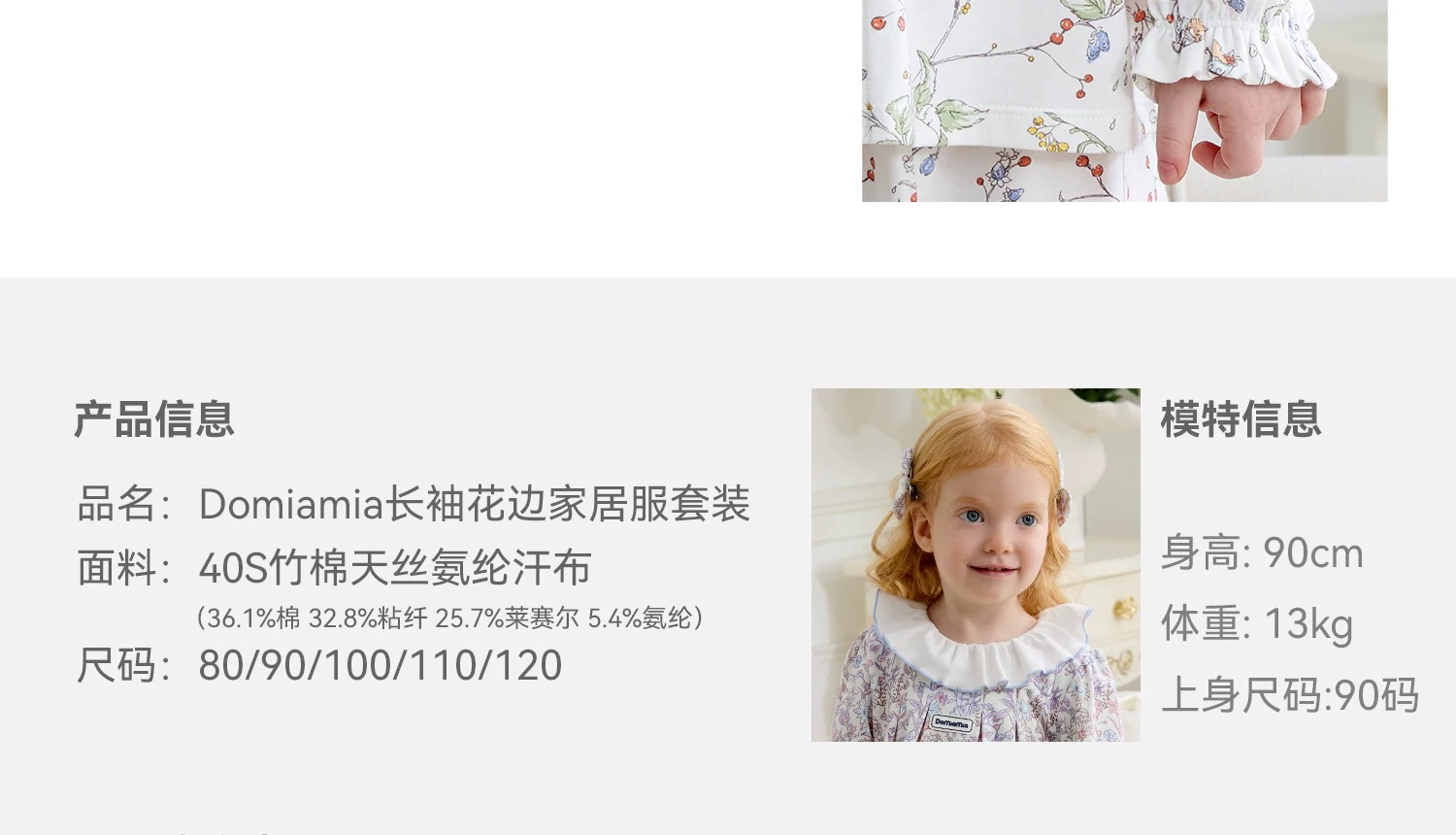 Domiamia 女宝宝针织长袖花边翻领套装(天丝)秋季女童睡衣 公主风家居服