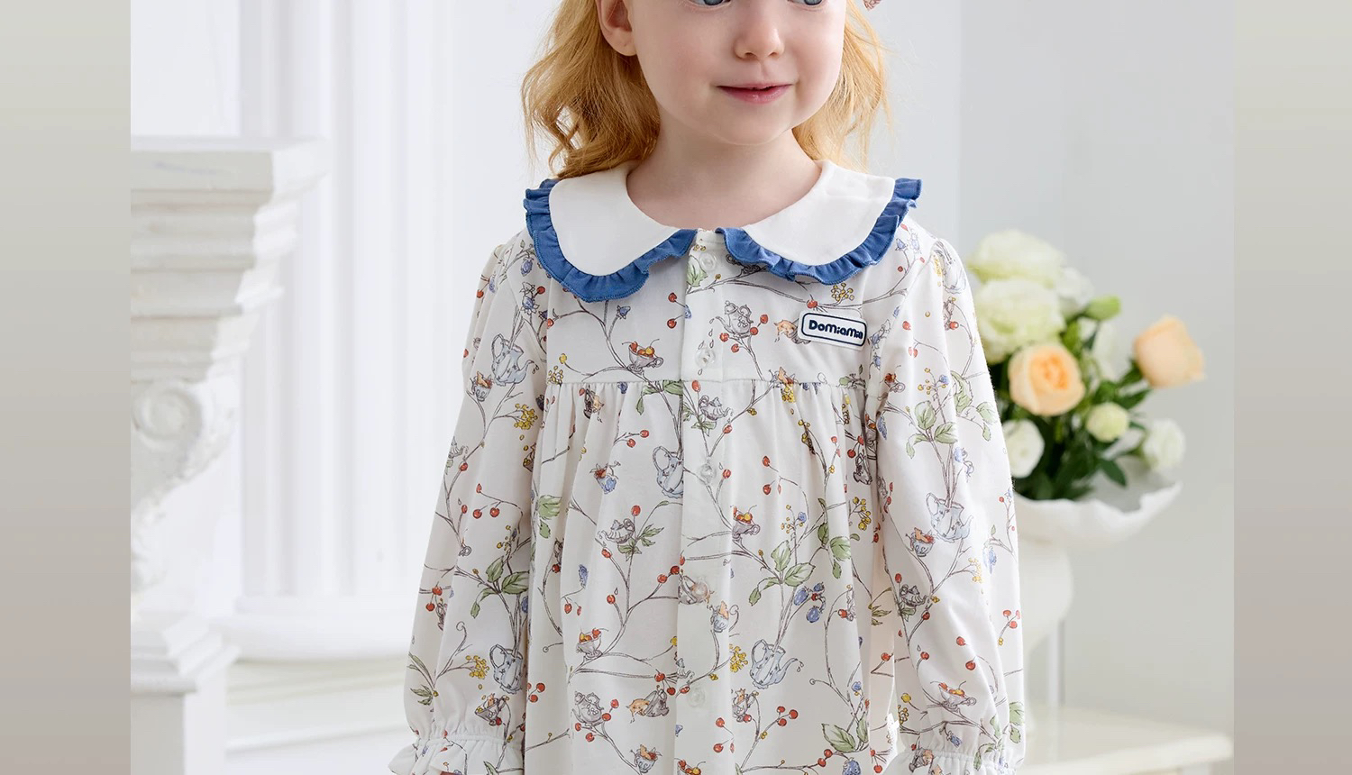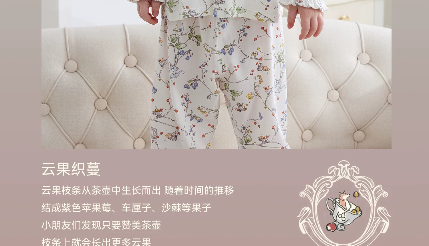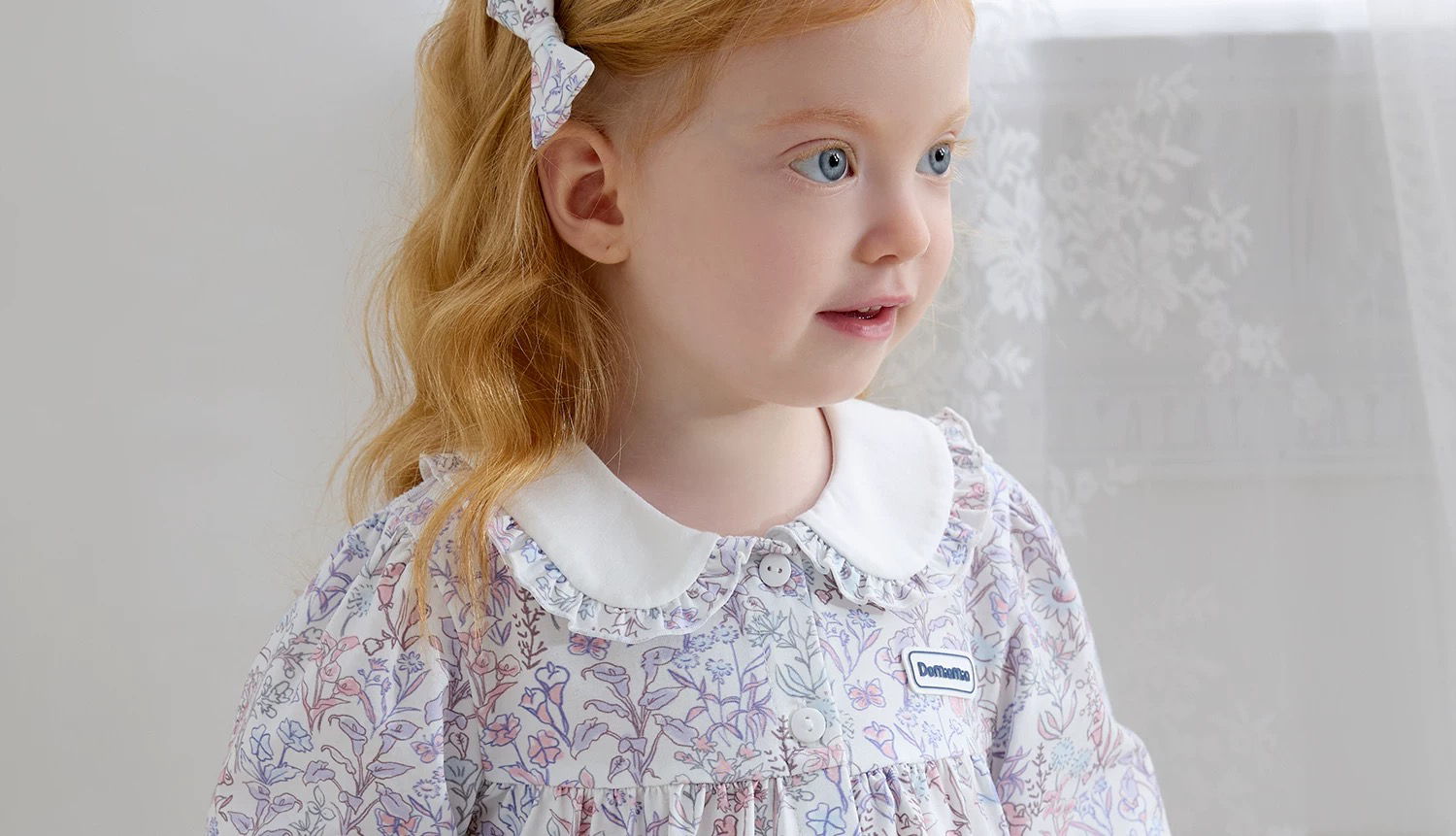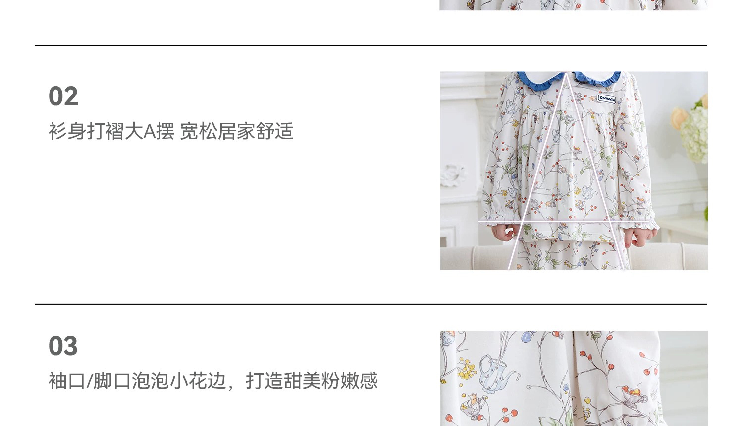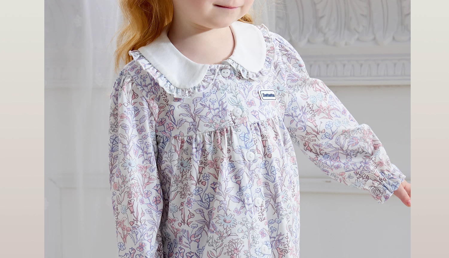 Domiamia 女宝宝针织长袖花边翻领套装(天丝)秋季女童睡衣 公主风家居服