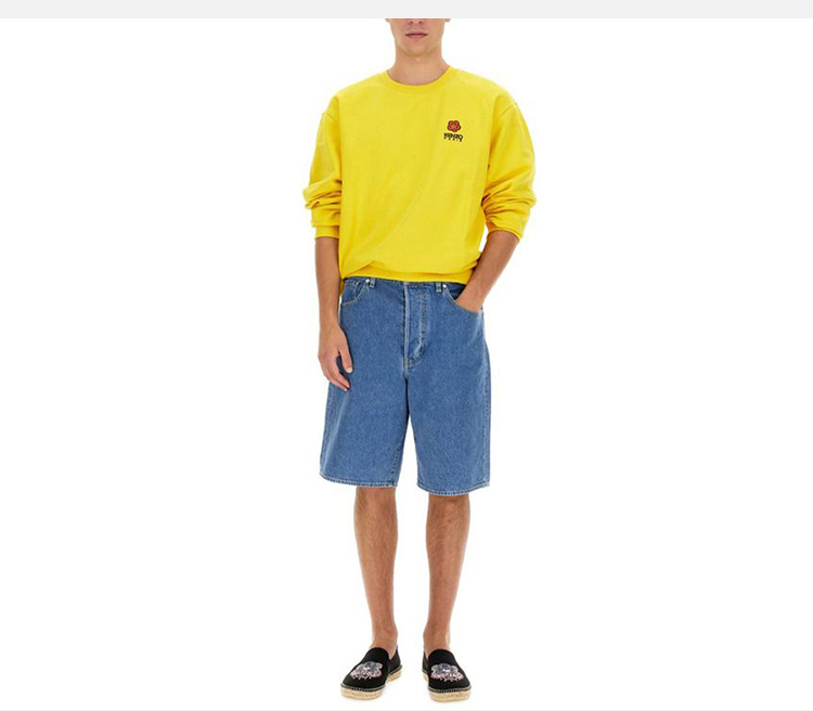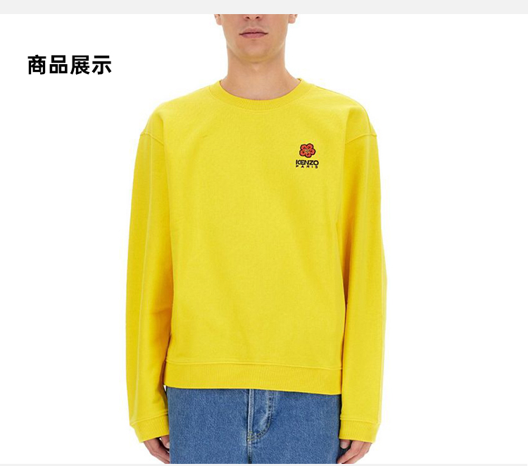 KENZO 高田贤三 男士棉质字母花图案刺绣徽标圆领长袖卫衣 黄色 FC65 SW412 4MF 40