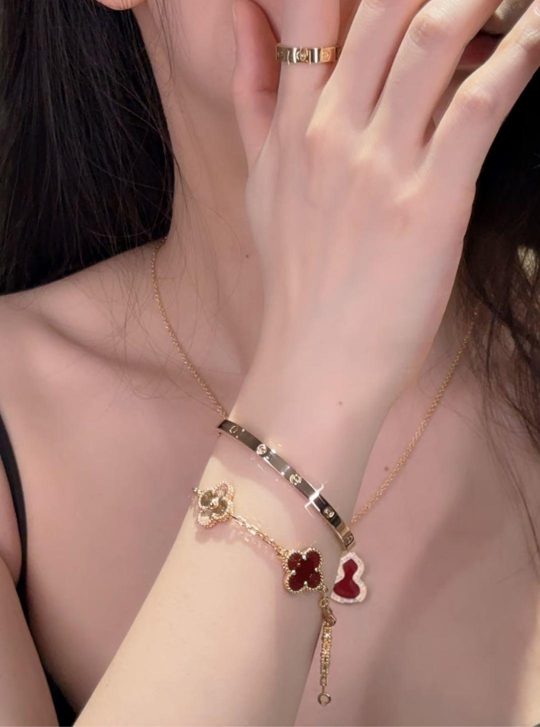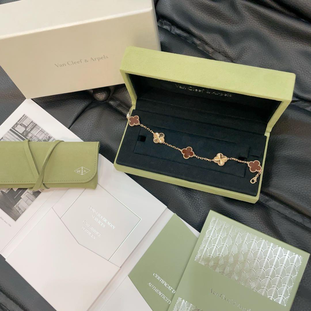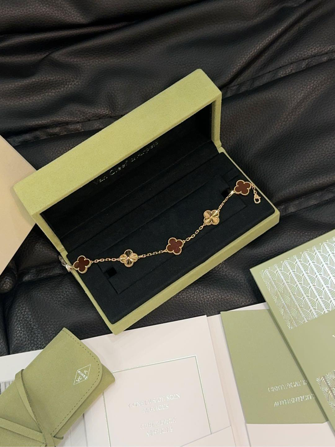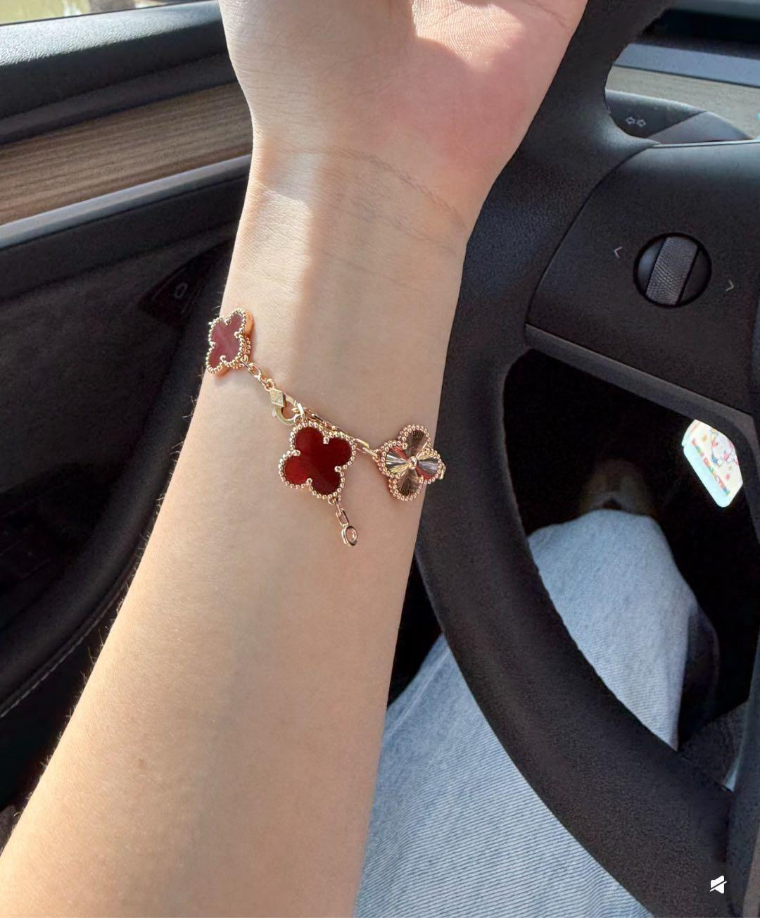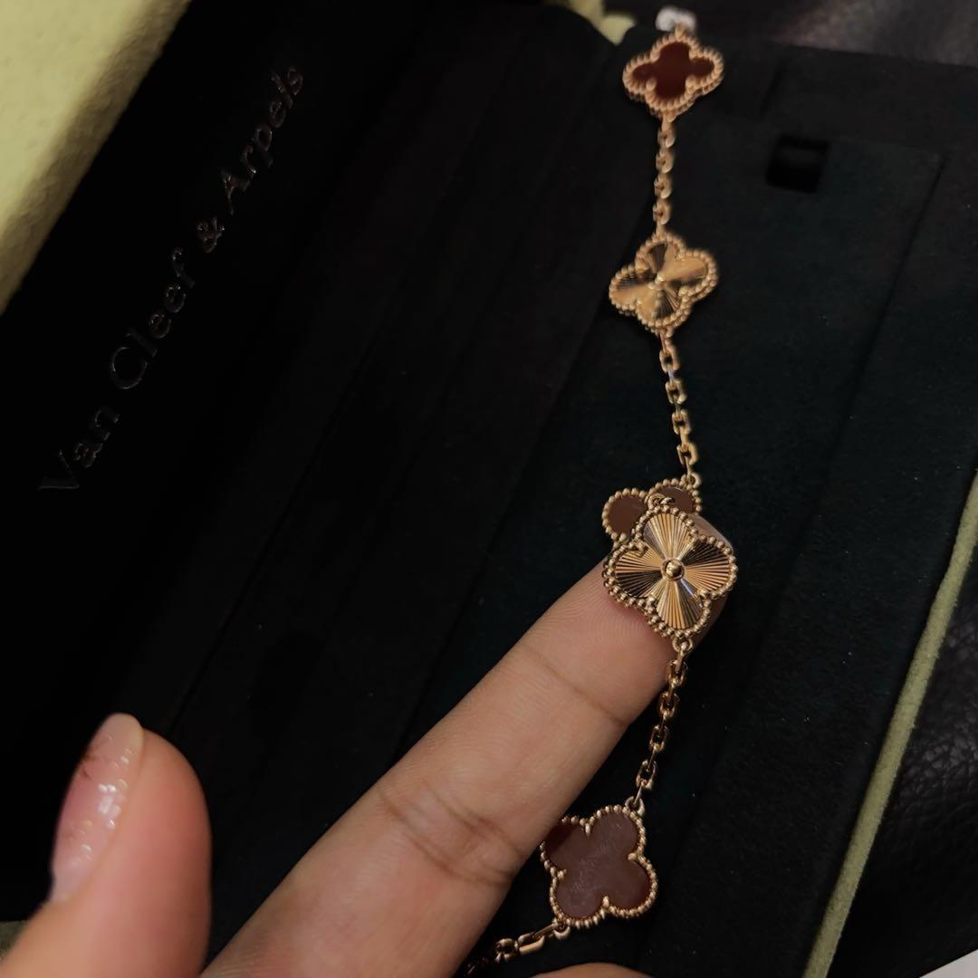 正品二手 梵克雅宝 vca 镭射 红玉髓 四叶草 五花手链👋99新 总长19cm 大全套配件:票 保卡 说明书 盒子 清洁扫 纸袋 。超保值款女神必备