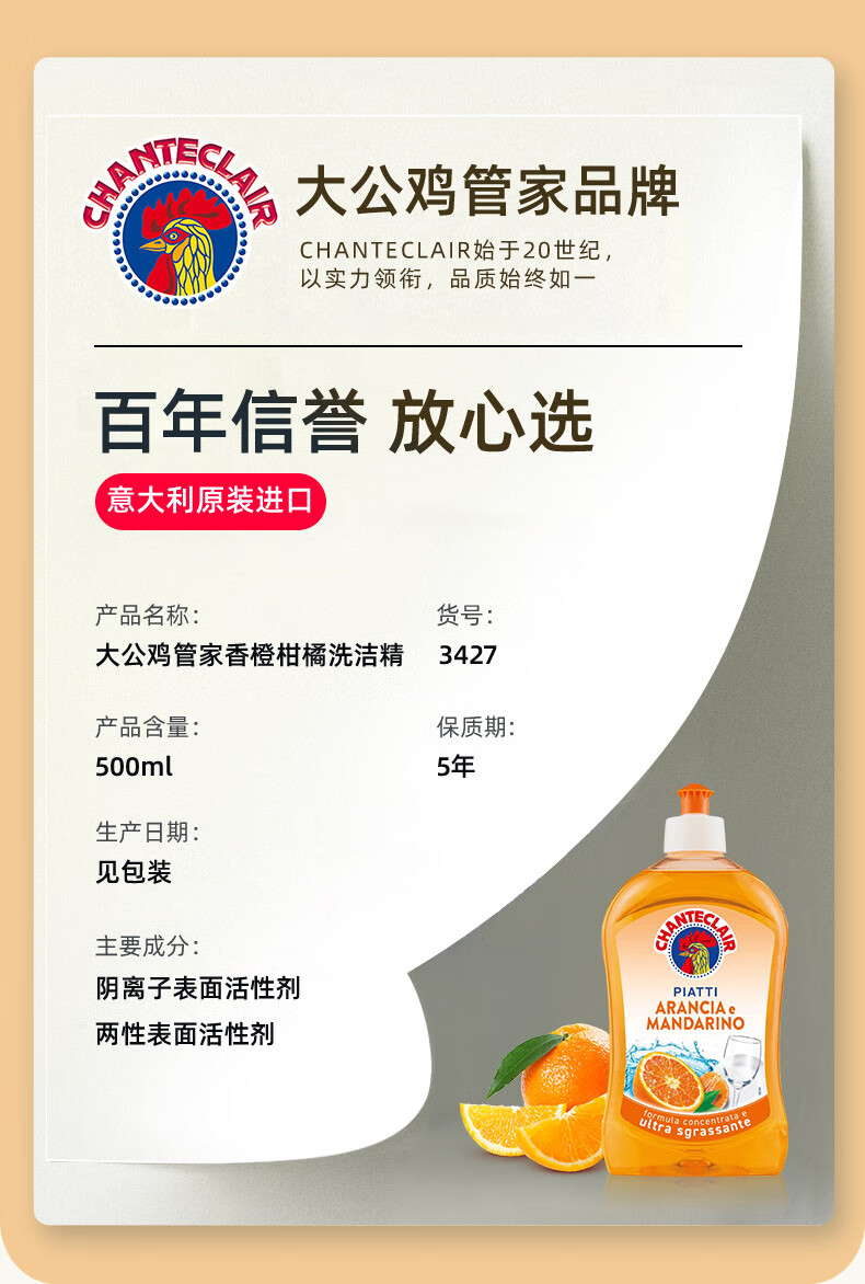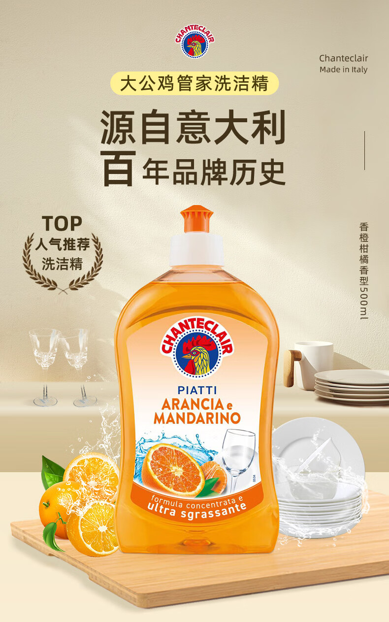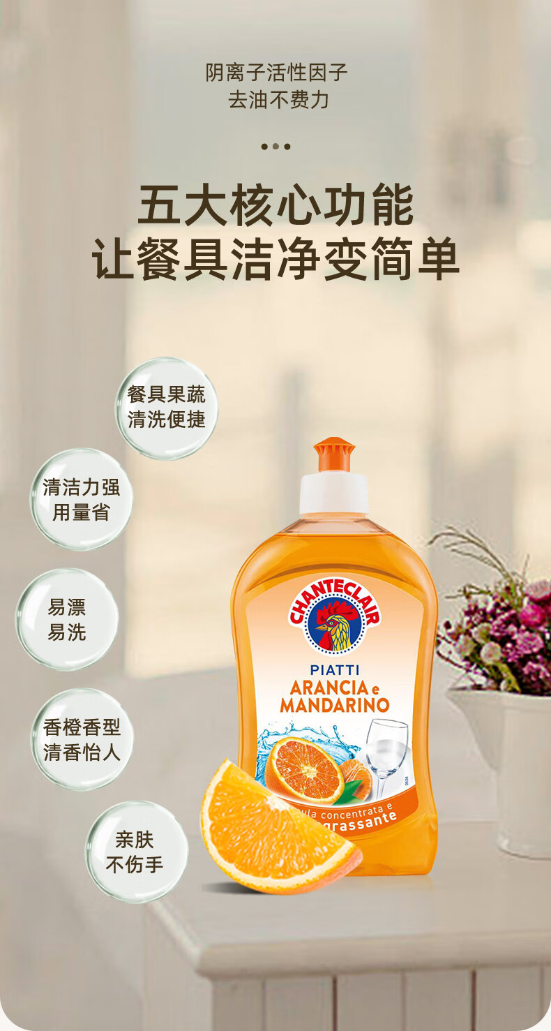 【分仓直发包邮】CHANTECLAIR大公鸡管家浓缩香橙洗洁精500ml*2瓶
