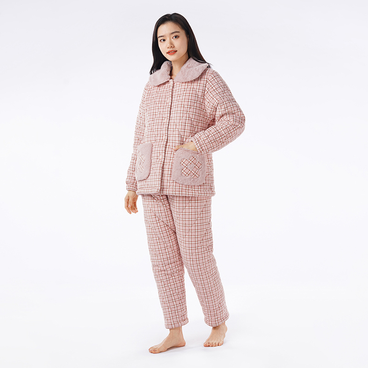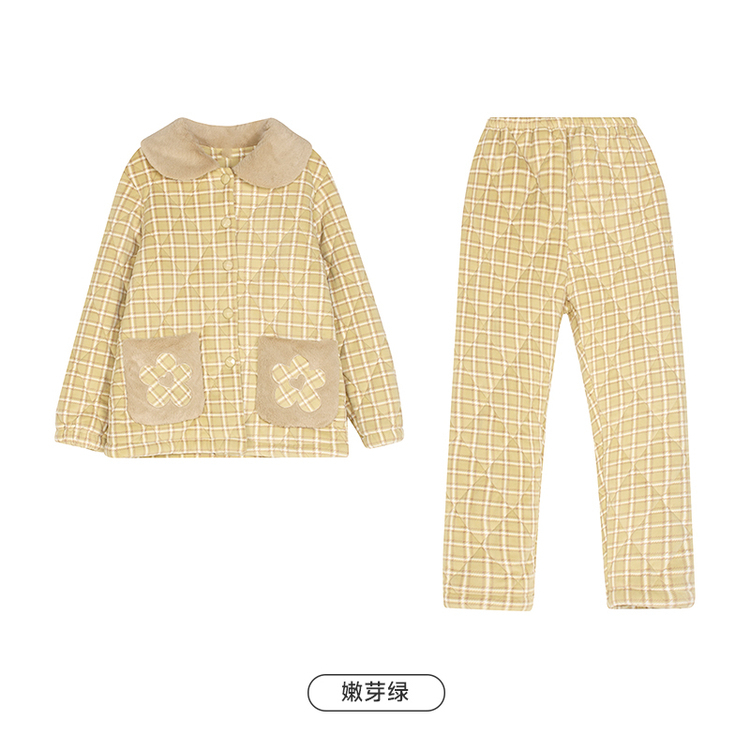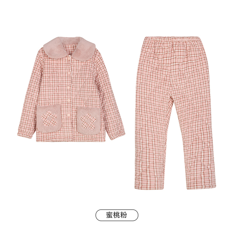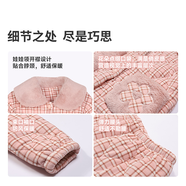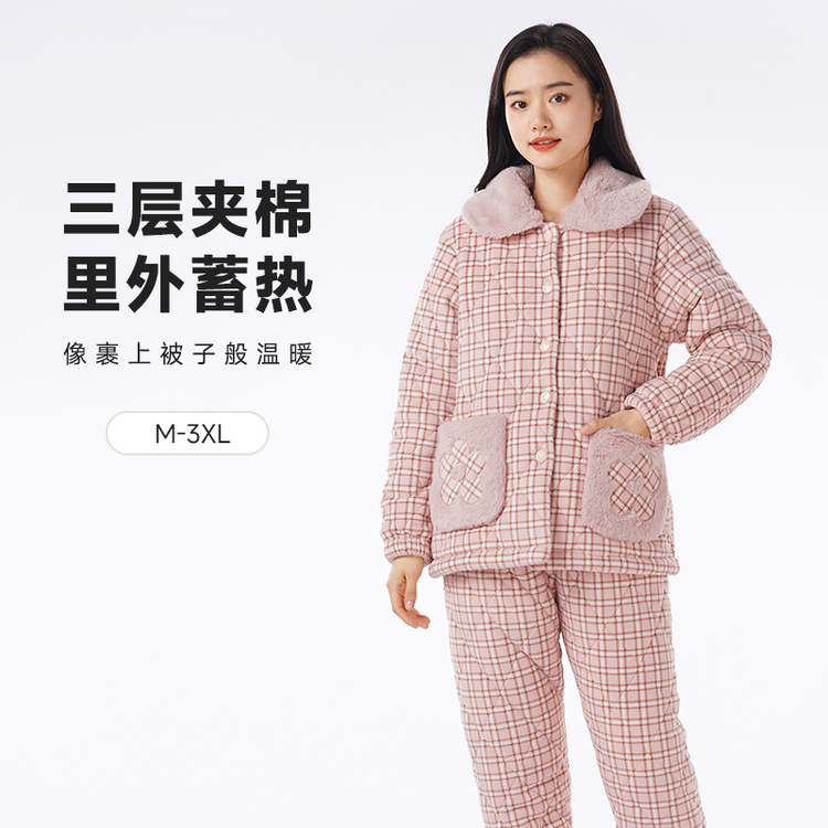 都市丽人水晶超柔印花夹棉女士家居服长袖长裤加厚夹棉套装LHH1M5