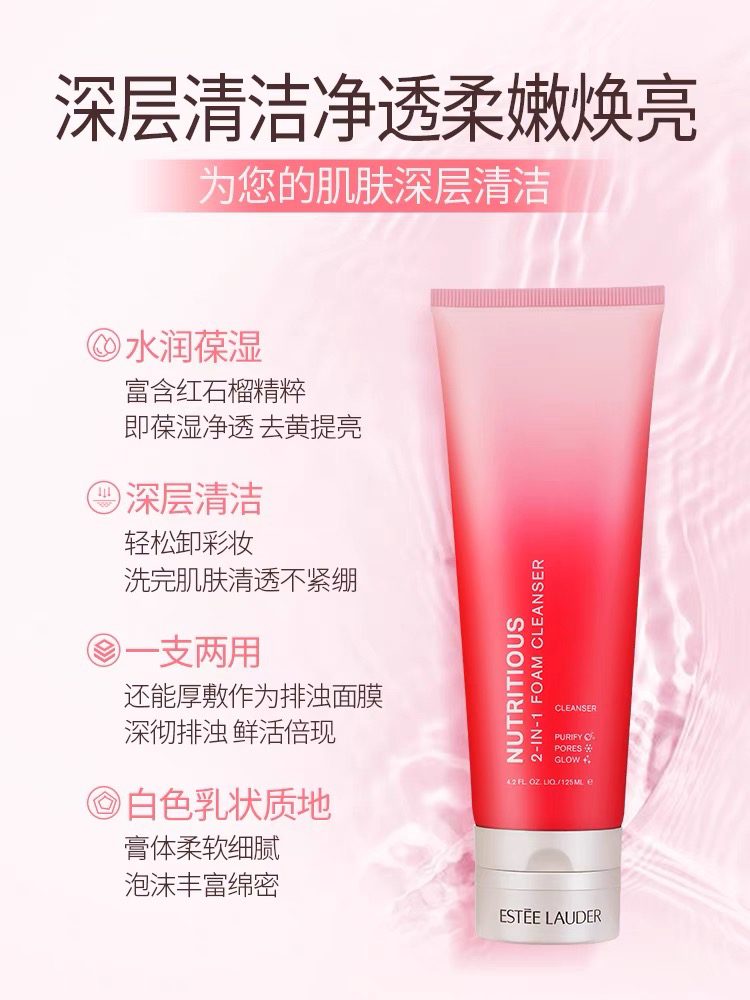 【海关保税直发】Estee Lauder雅诗兰黛红石榴洁面-清透亮水润-会员5折