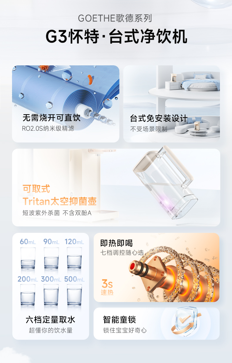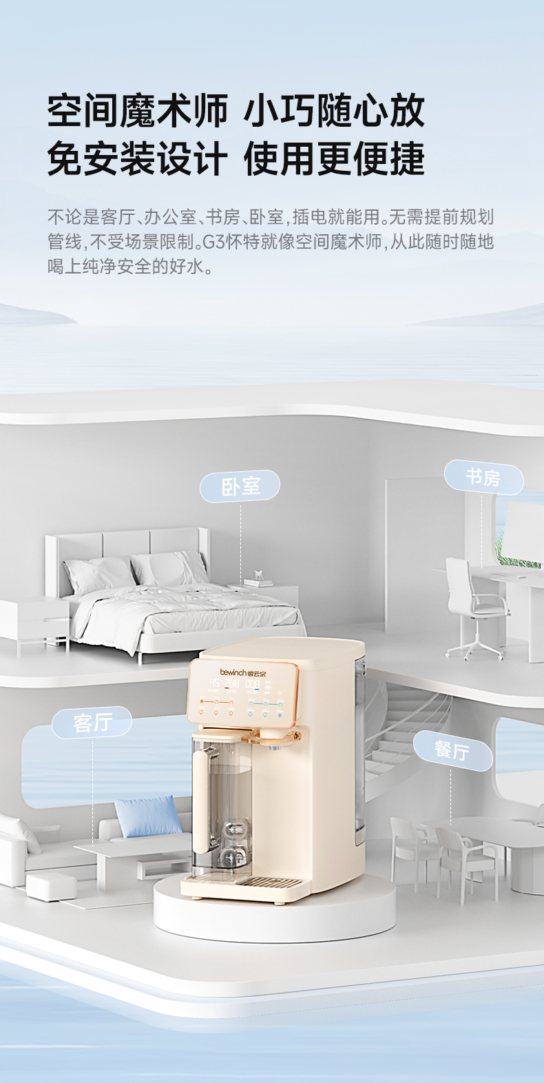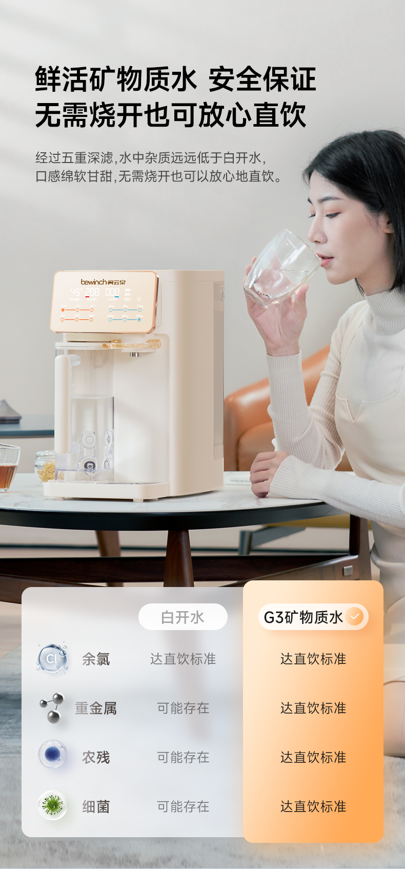 品牌直发 bewinch 碧云泉 G3台式净化饮水机 奶油白