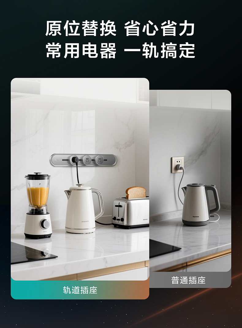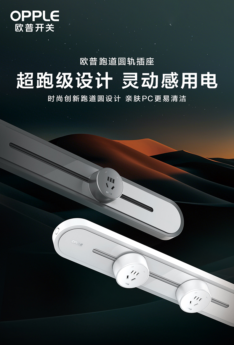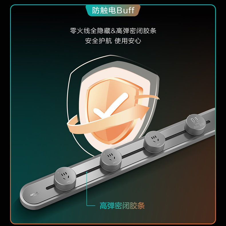 欧普(OPPLE)壁挂式轨道插座排插可移动轨道插座导轨厨房客厅卧室橱柜无线排插GD02