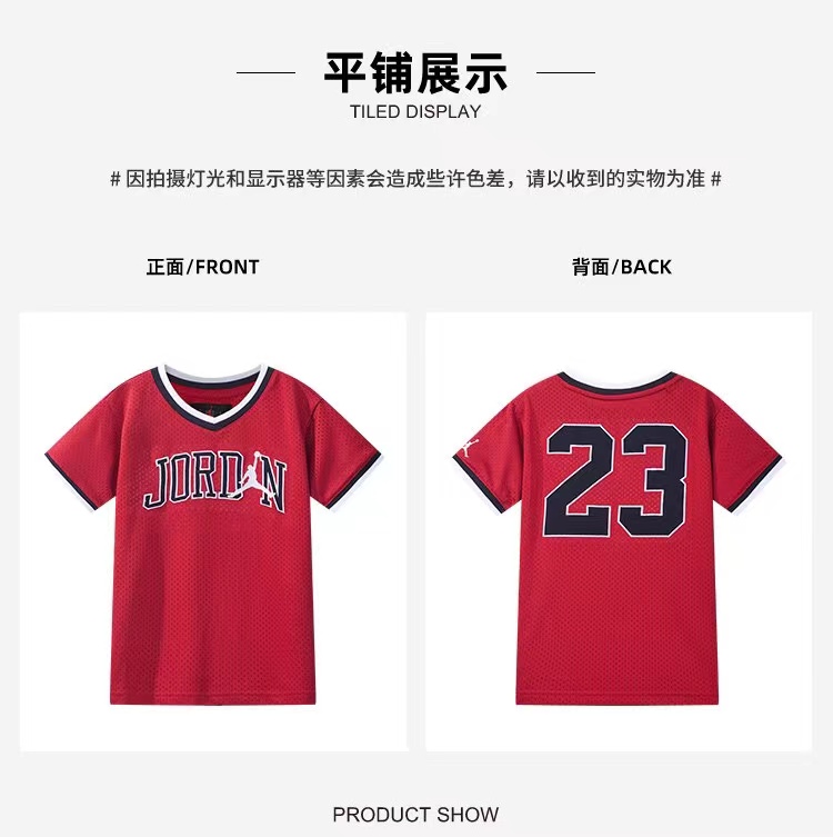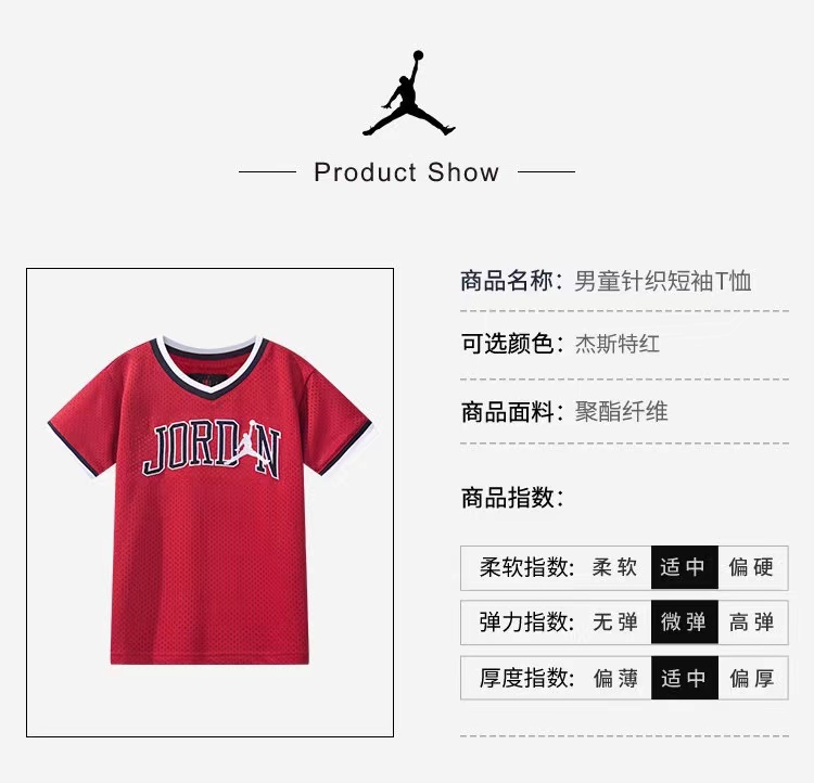 AIR JORDAN乔丹童装男童AJ夏季新款V领速干短袖T恤衫 JD2022042