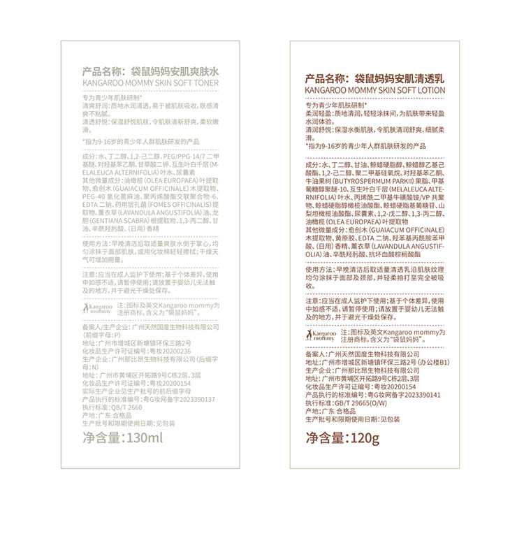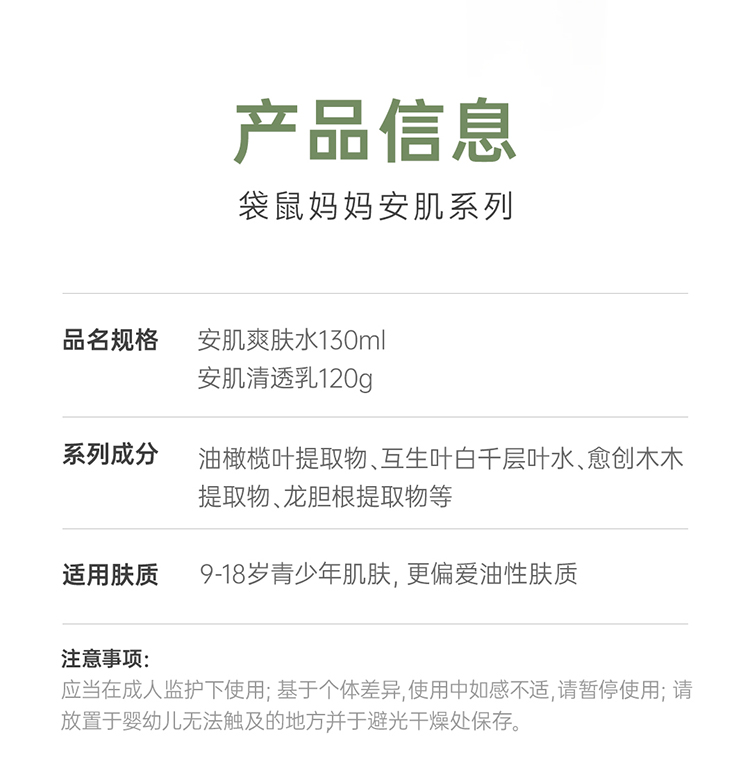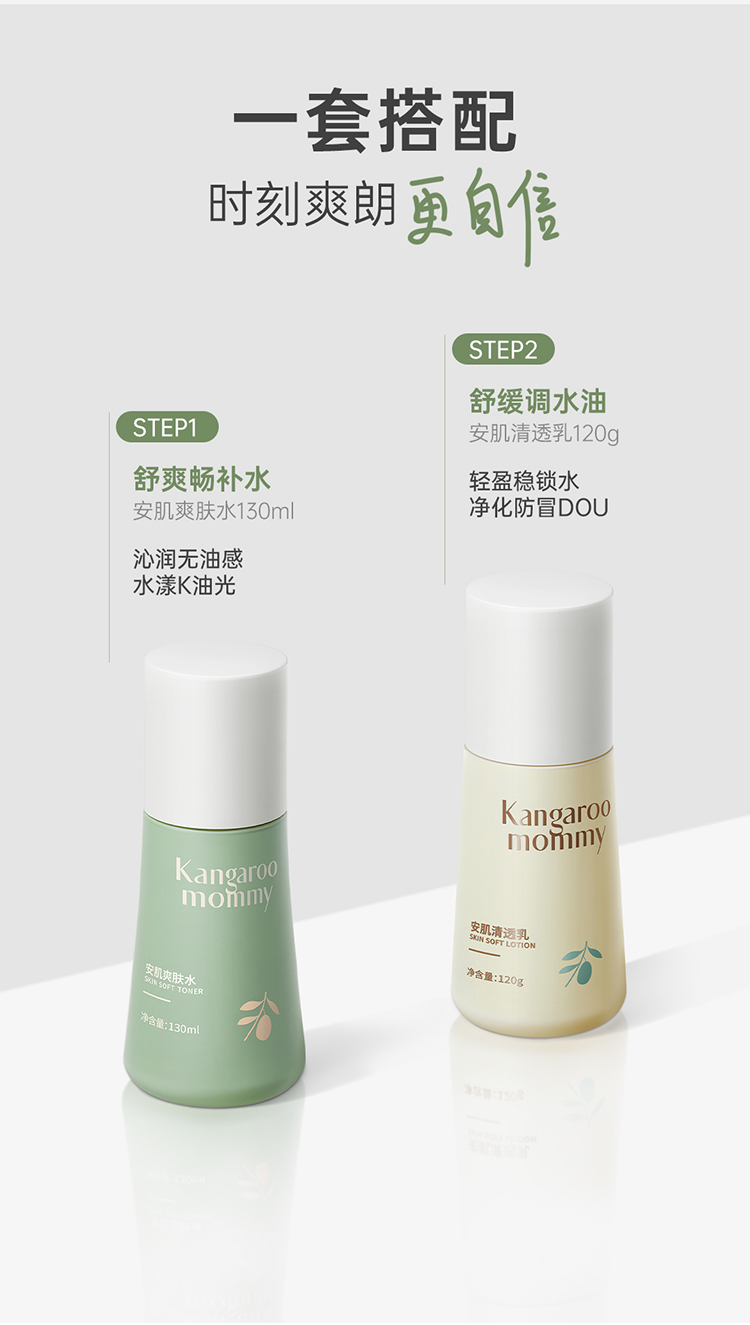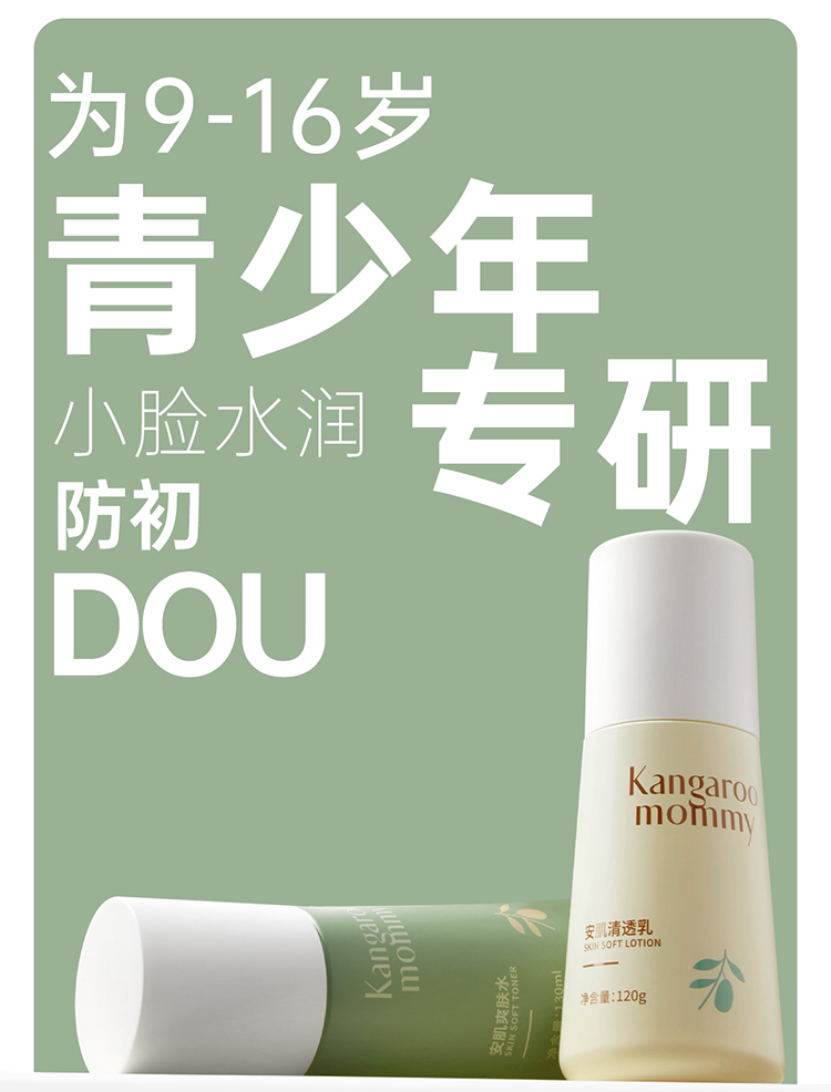【青少年防痘2件套】补水控油防冒痘 袋鼠妈妈青少年安肌护肤2件套(水+乳)