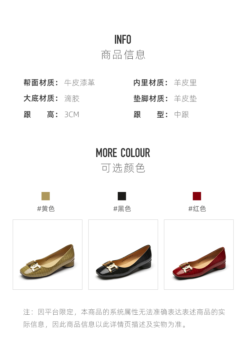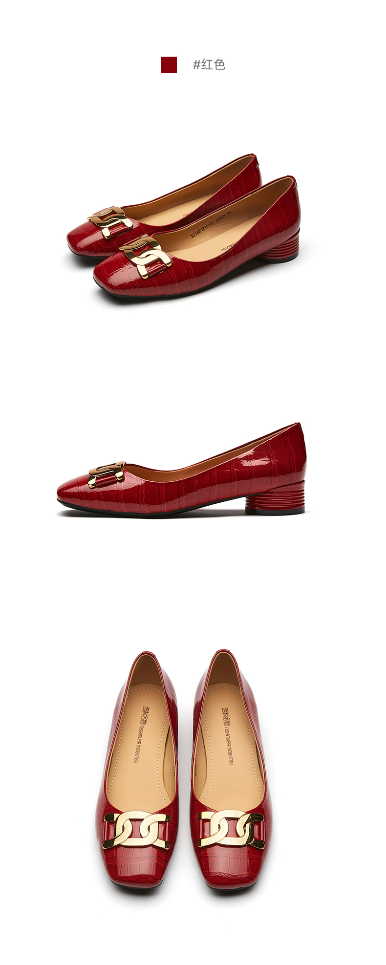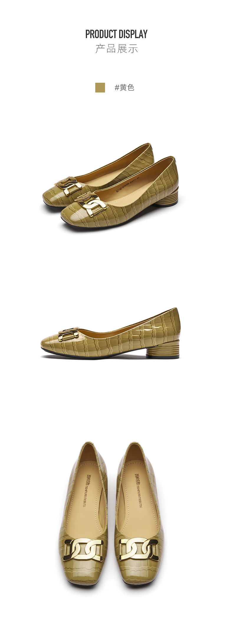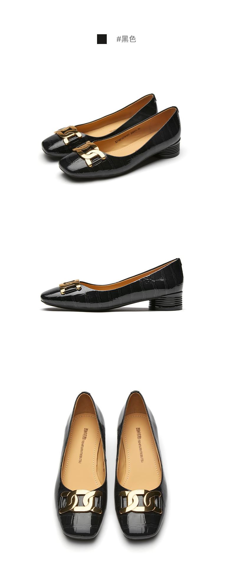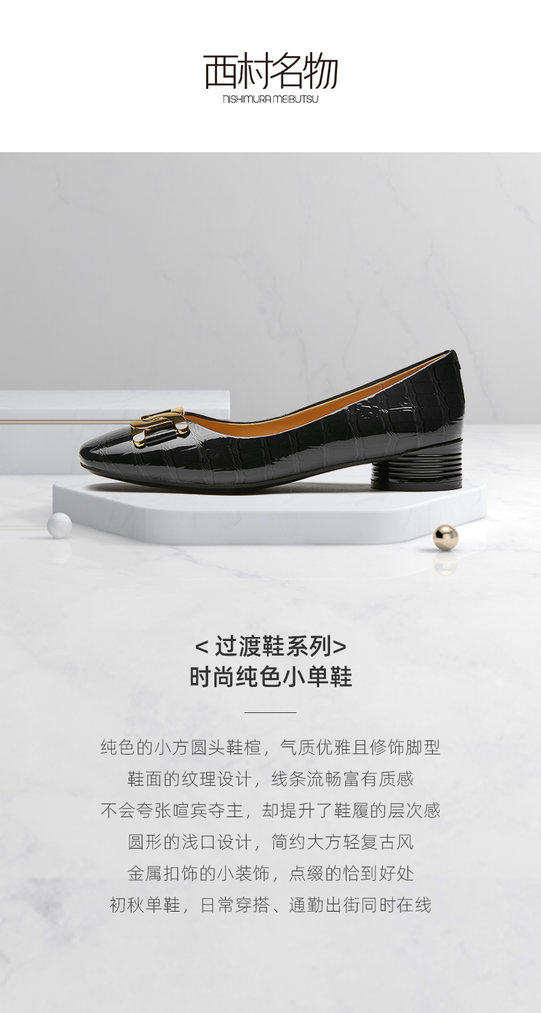 西村名物2021时尚招财开运铜钱扣浅口女单鞋粗跟时装韩版鞋X21AE12161