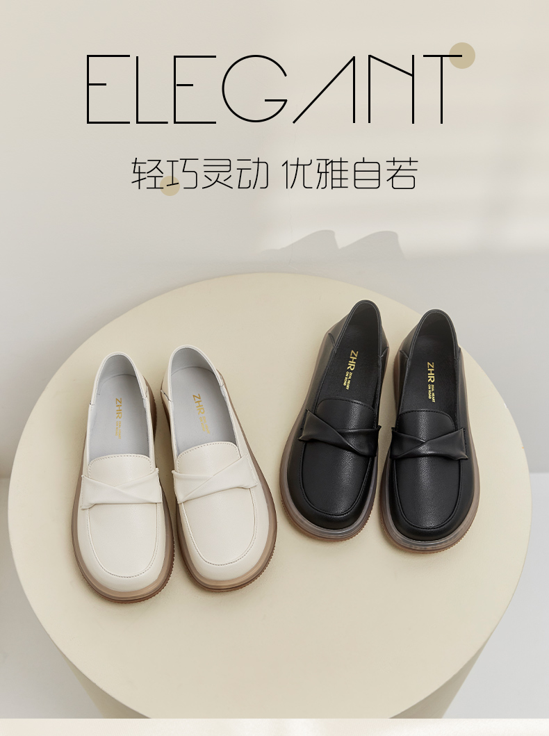 ZHR乐福鞋女2023春季新款休闲软底透气单鞋女平底百搭小皮鞋