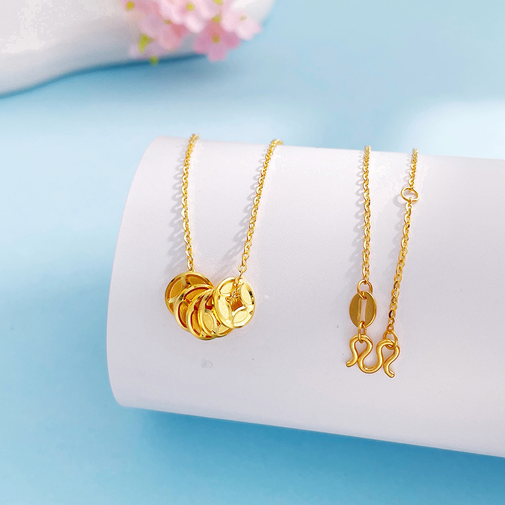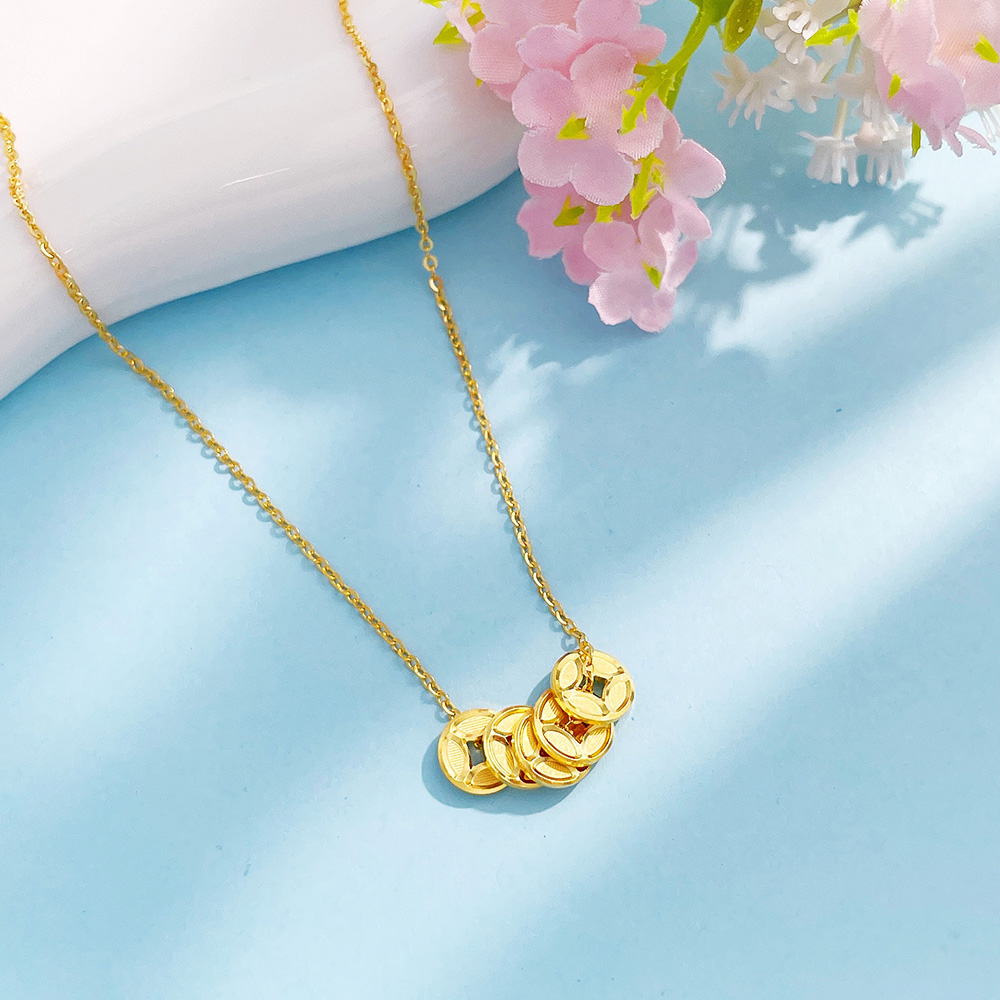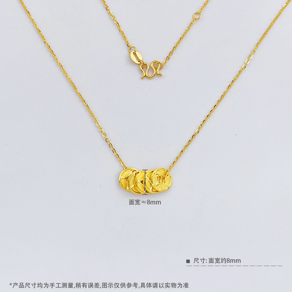 【限时克减150元】足金999.9 #招财进宝 【精品】镂空方孔金币仿五帝币铜钱造型调节套链(AWWTL00220)(预售产品下单后不退款不退货不换货不补差价