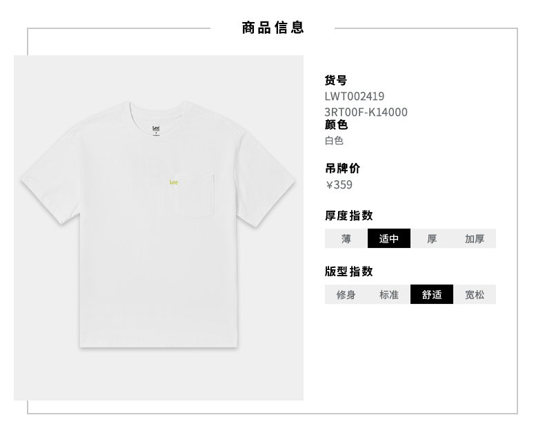 Lee商场同款22春夏新品舒适男友版印花多色女短袖T恤LWT0024193RT