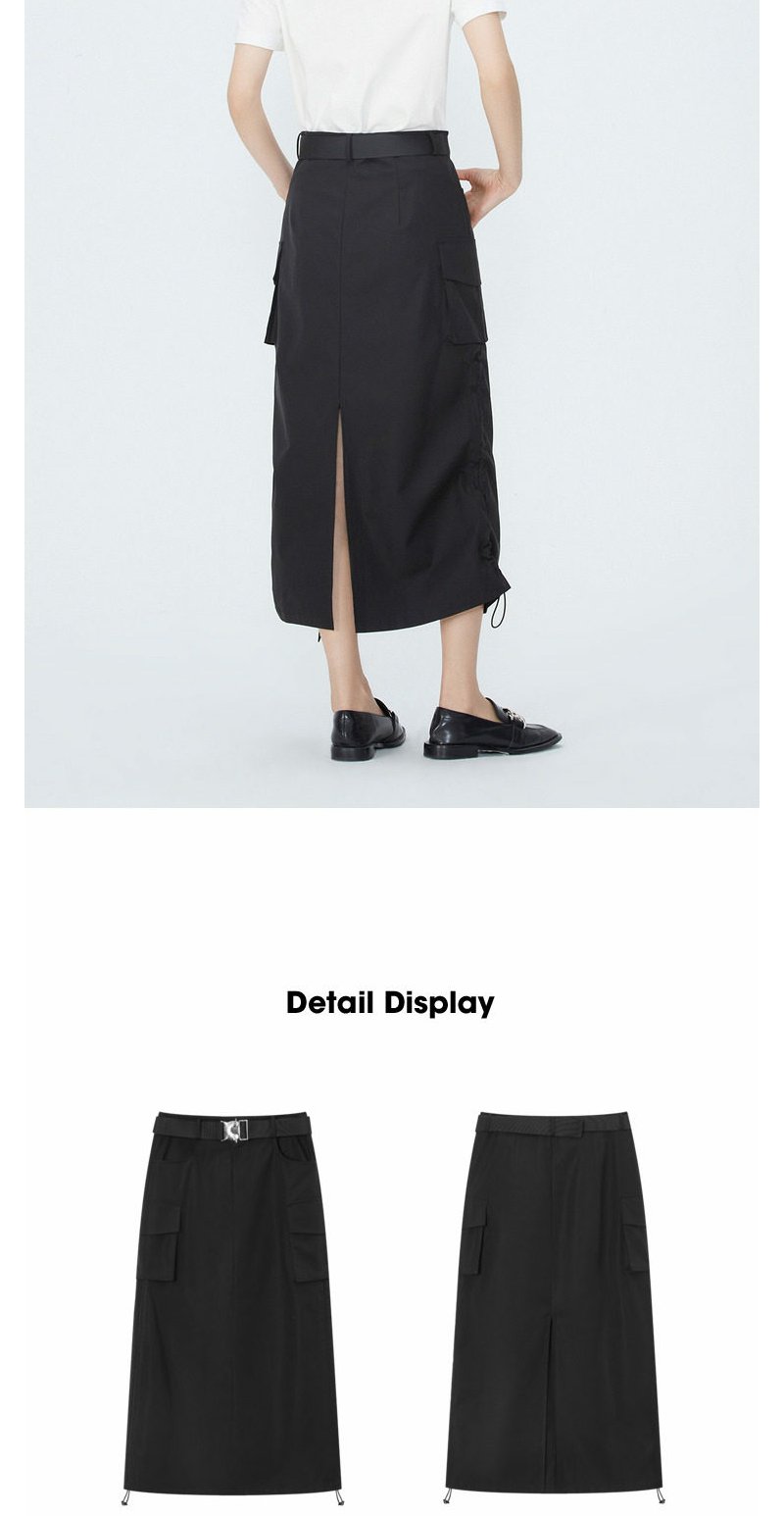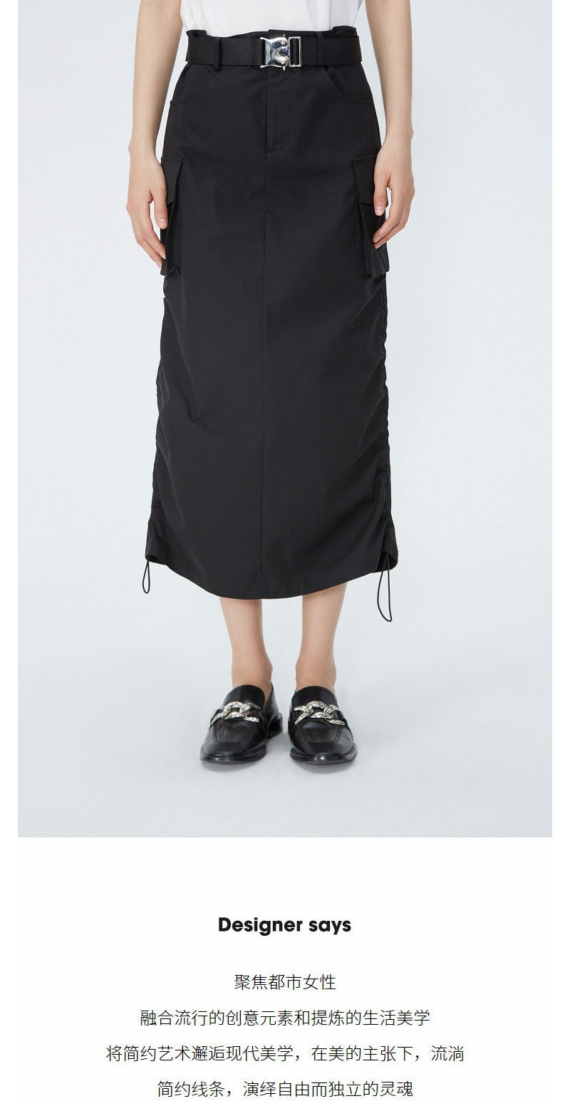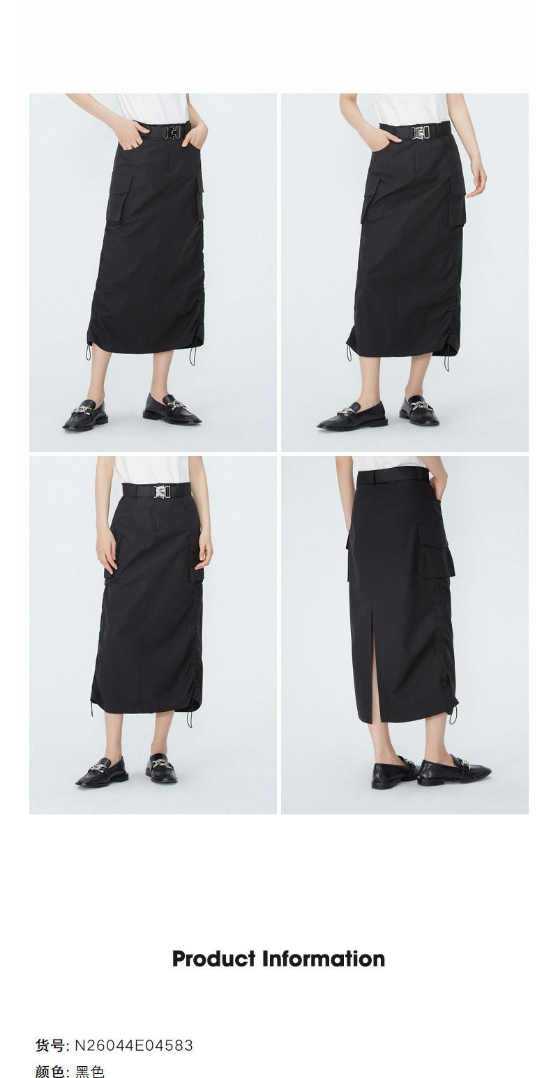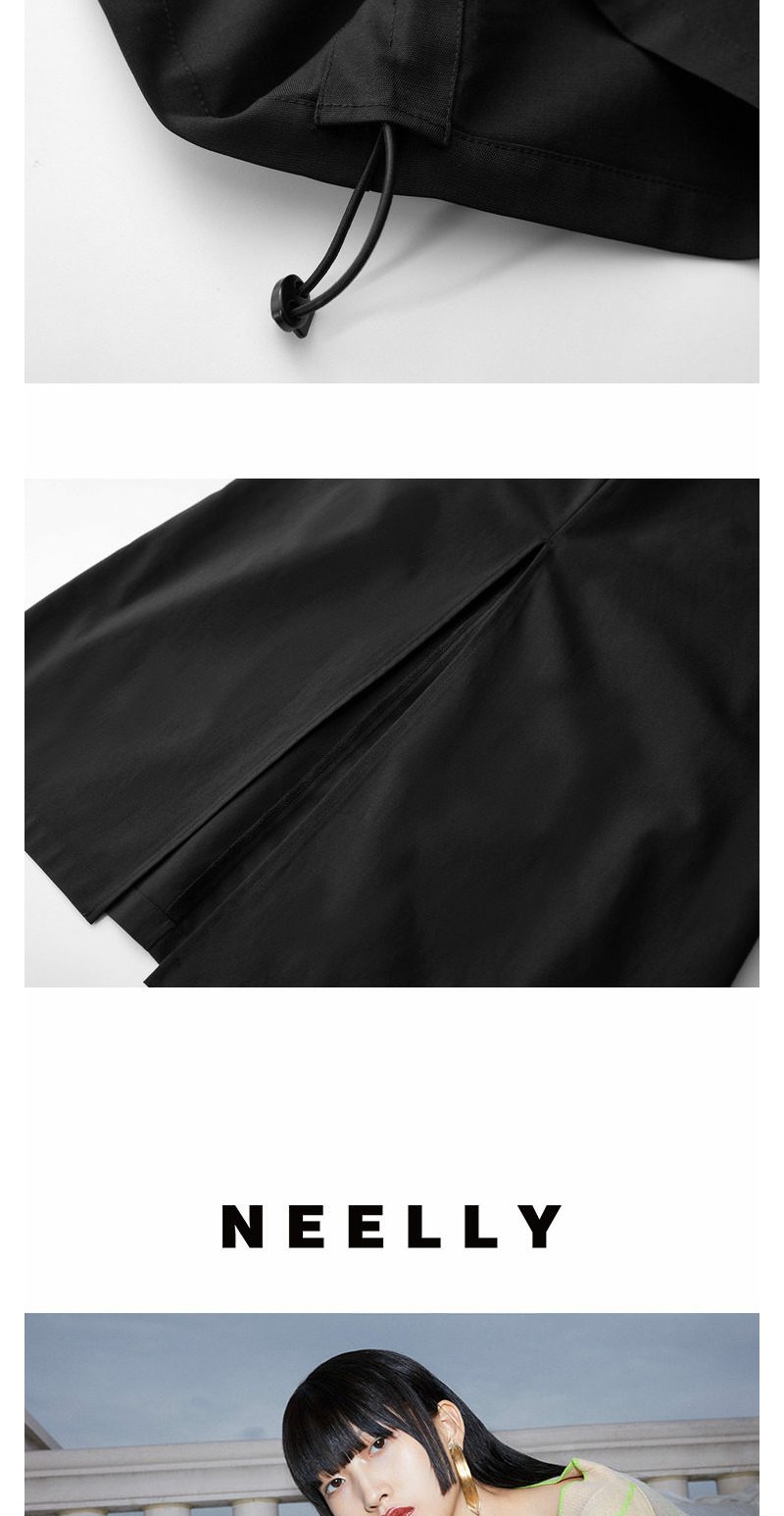 NEELLY纳俪商场同款夏新款美式复古工装半裙女抽绳褶皱后开叉腰裙N26044E04583