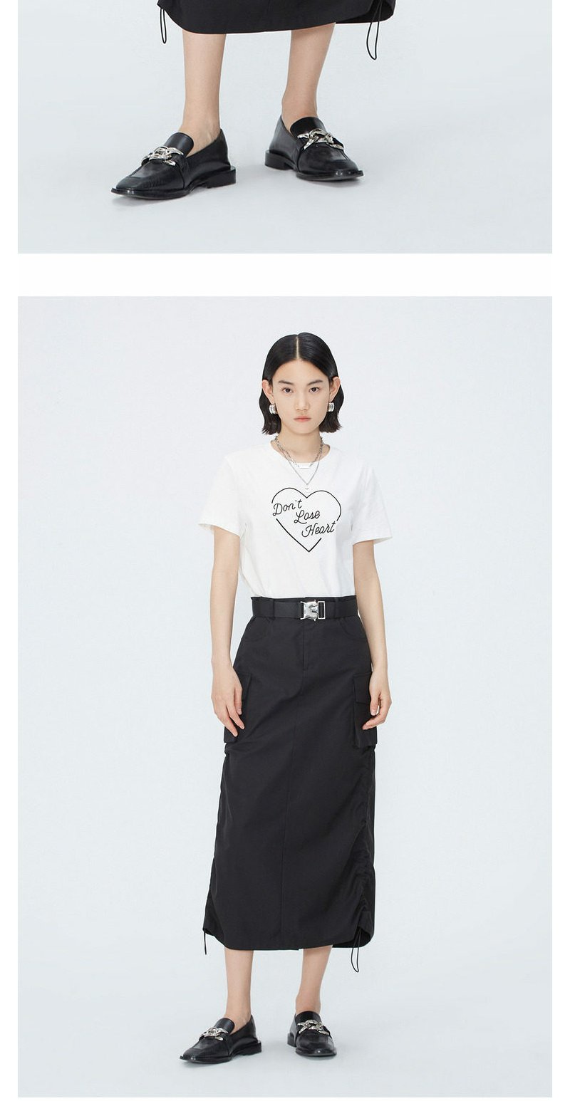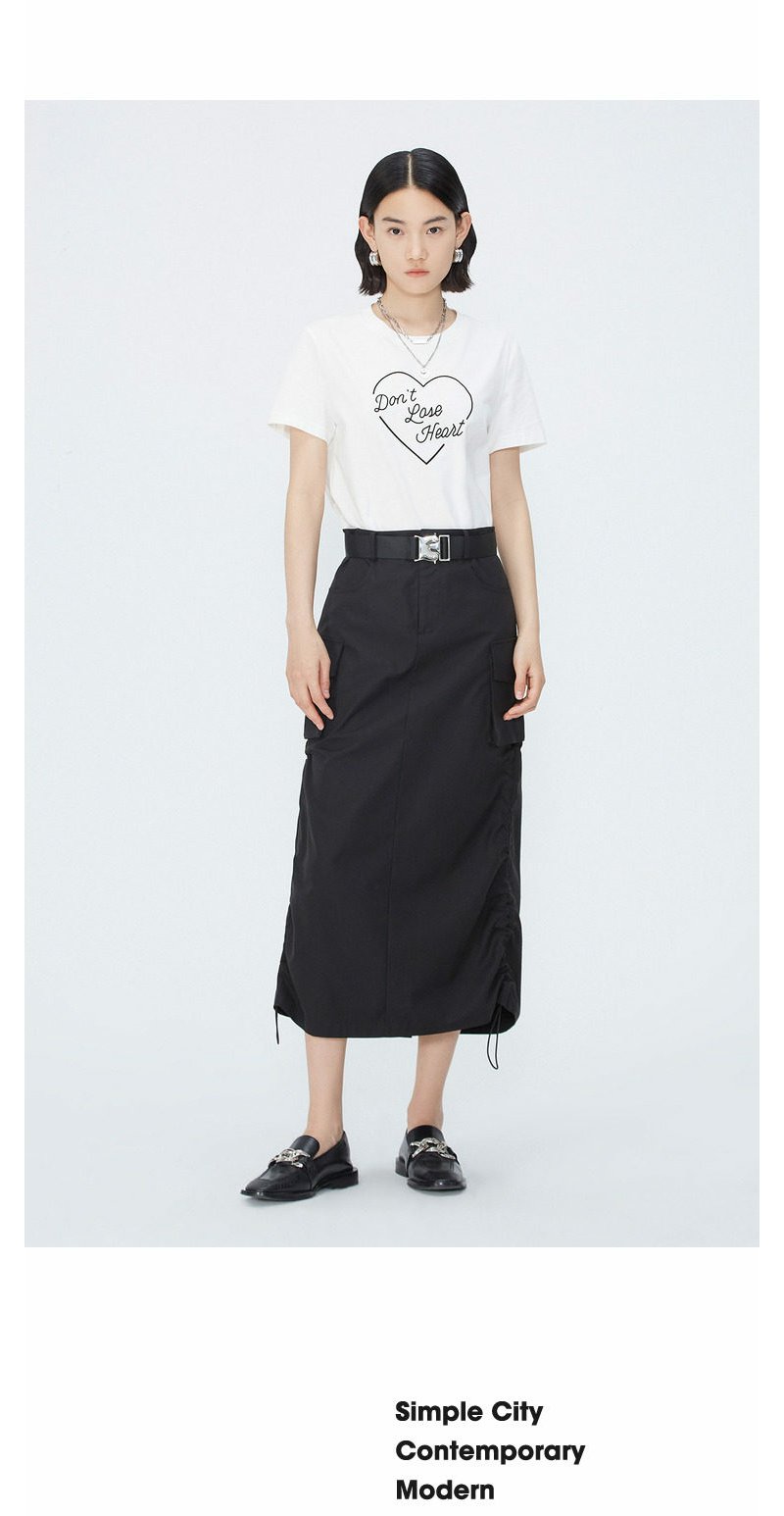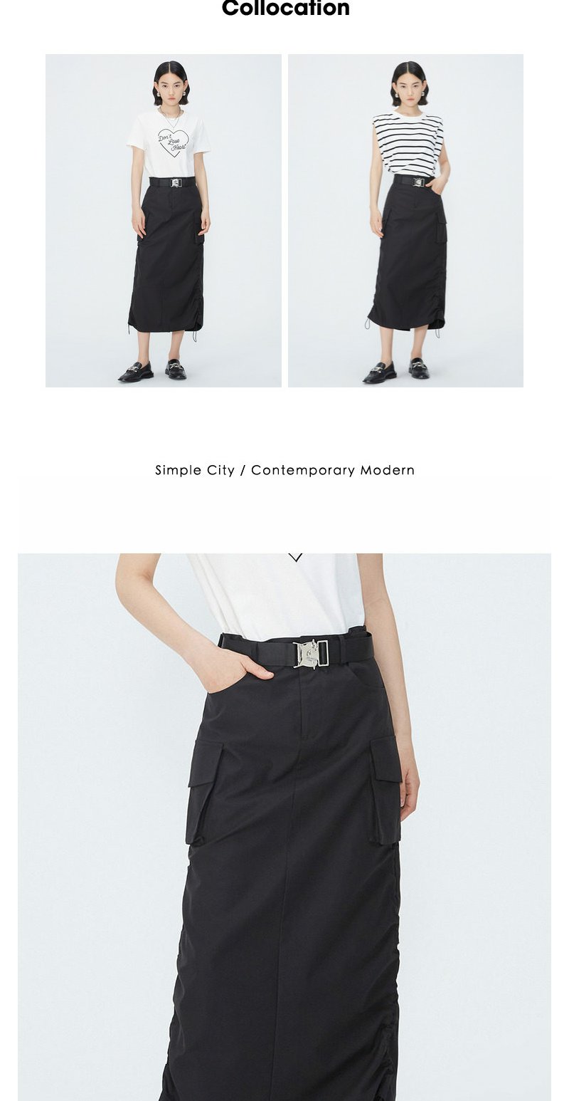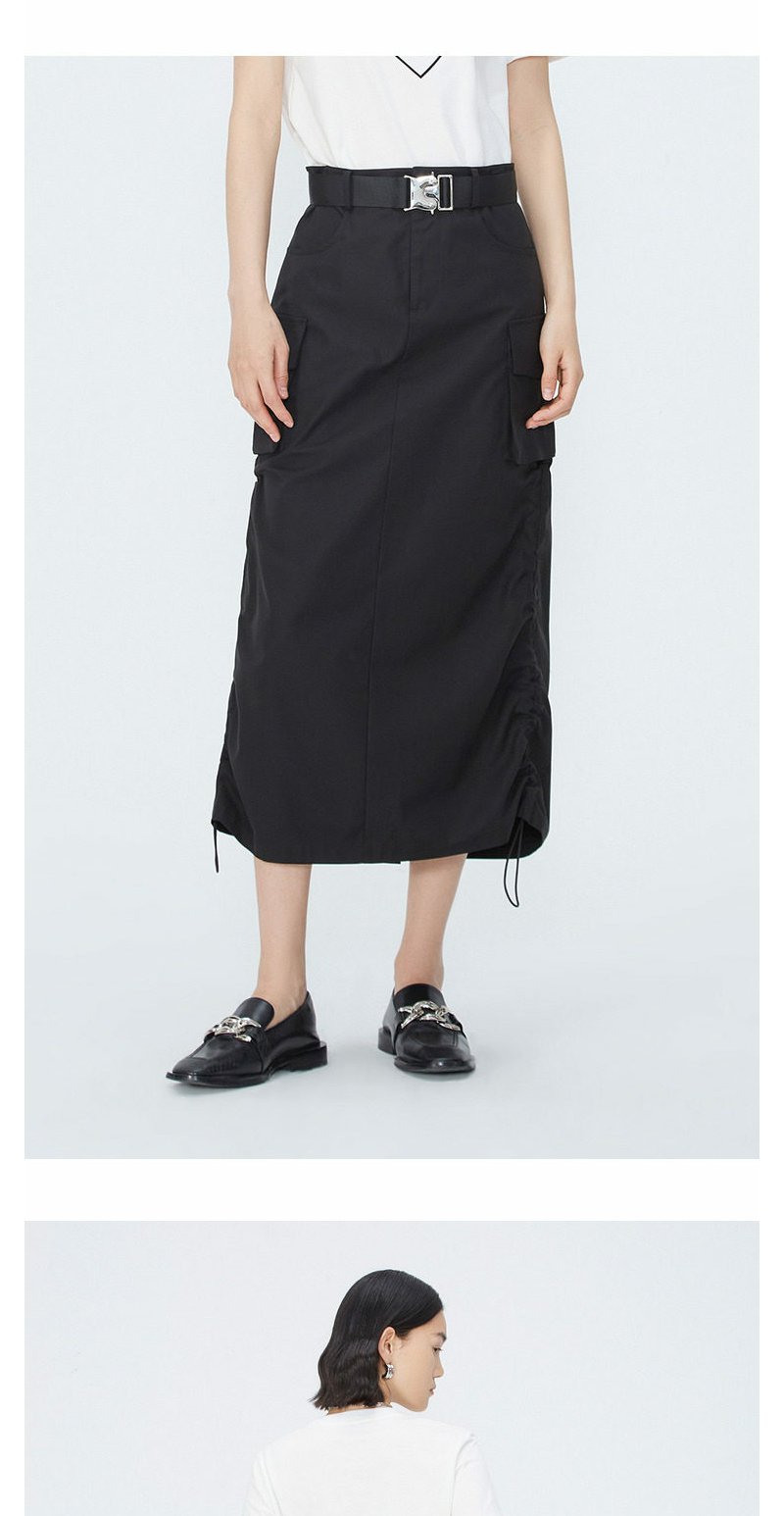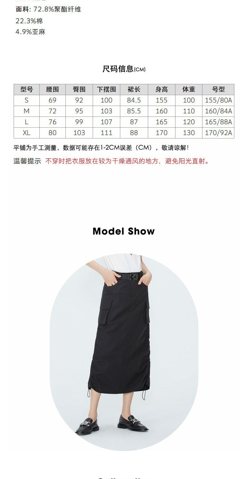 NEELLY纳俪商场同款夏新款美式复古工装半裙女抽绳褶皱后开叉腰裙N26044E04583