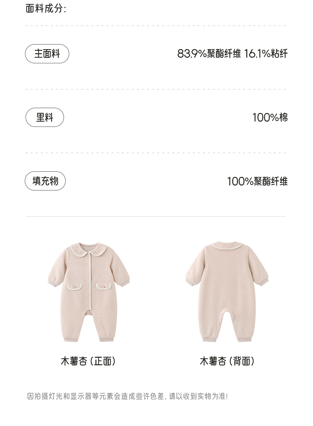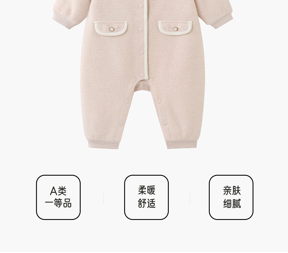 英氏新生婴儿连体衣秋冬新款女宝宝外出保暖哈衣爬服YRHAJ4R024A