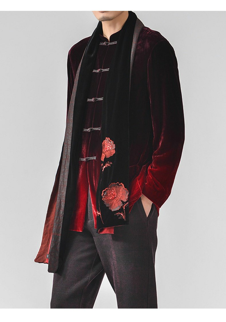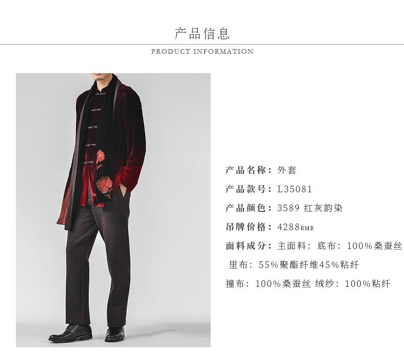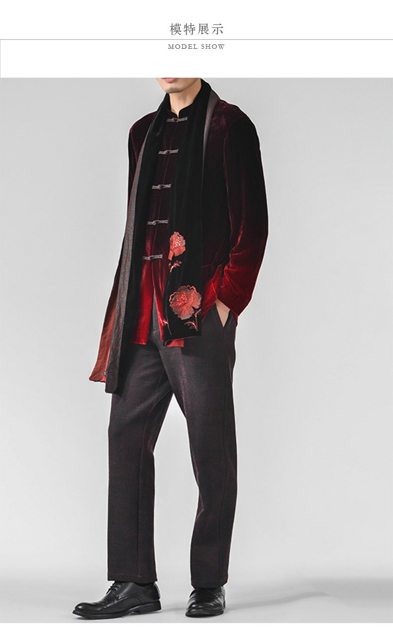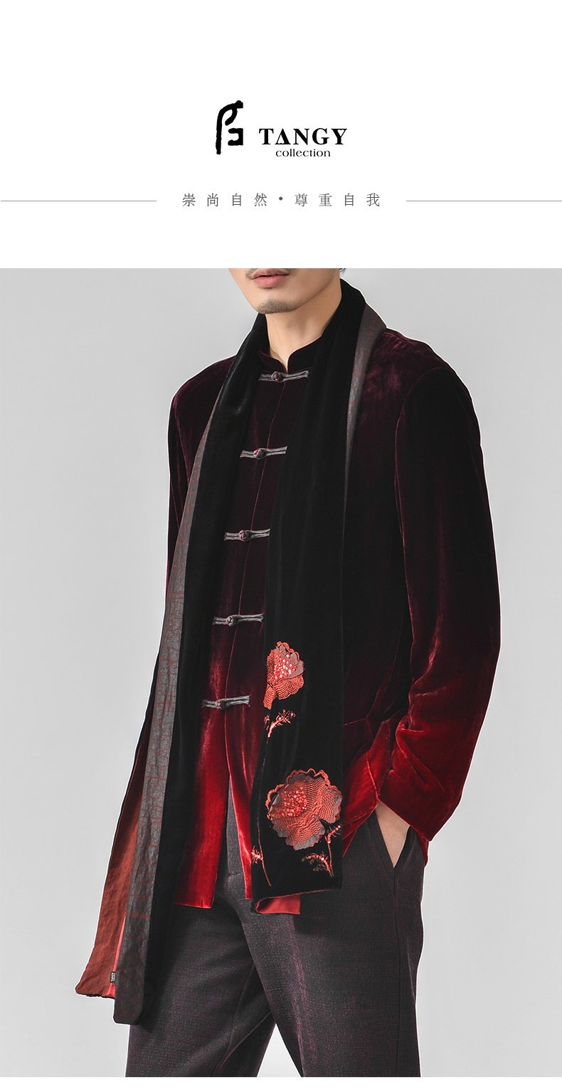 TANGY Collection/天意精品秋冬款中式套扣男士丝绒吊染外套