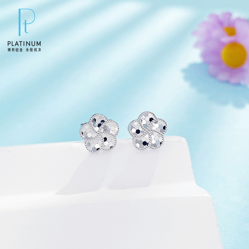 【限时8.8折】【线上铂金馆】PT950 【国际铂金协会 精品】铂金实心鱼鳞五瓣花花形耳饰耳钉(直针配铂金耳迫)(ACPTES00024)预售产品下单后不退款不退货不换货不补差价)