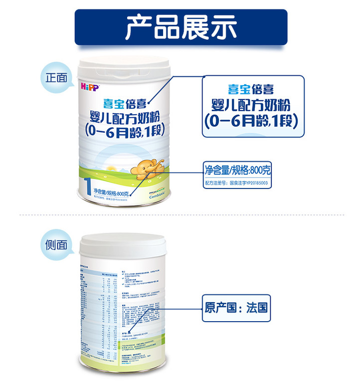 HiPP喜宝奶粉倍喜婴儿配方奶粉1段800g0-6个月喜宝大白罐原装进口【喜宝奶粉】