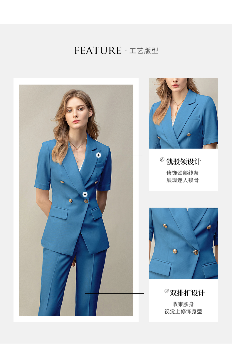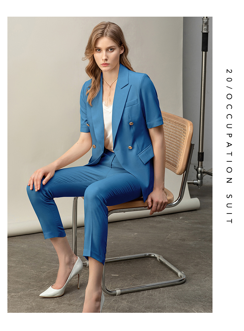 IWY/羽灰色夏季短袖西装套装女高级感职业装通勤阔腿裤正式场合工作服6CP07