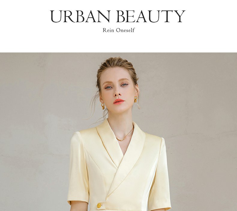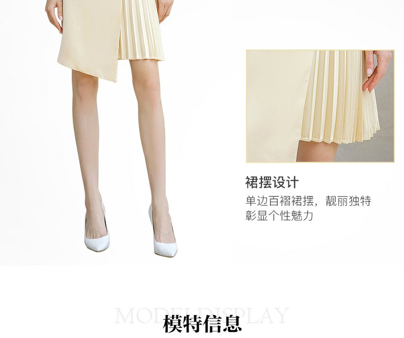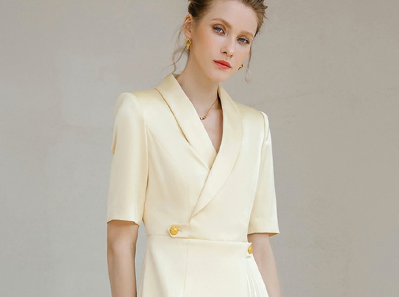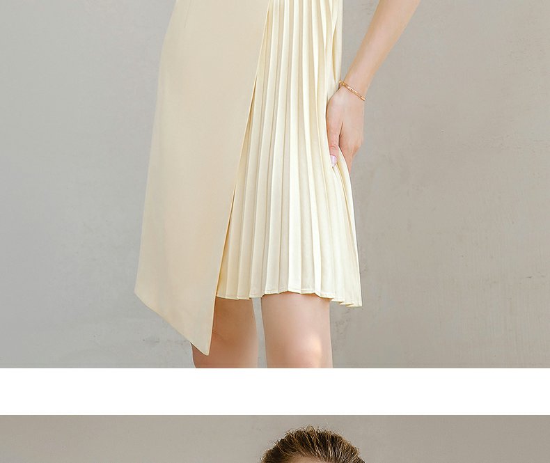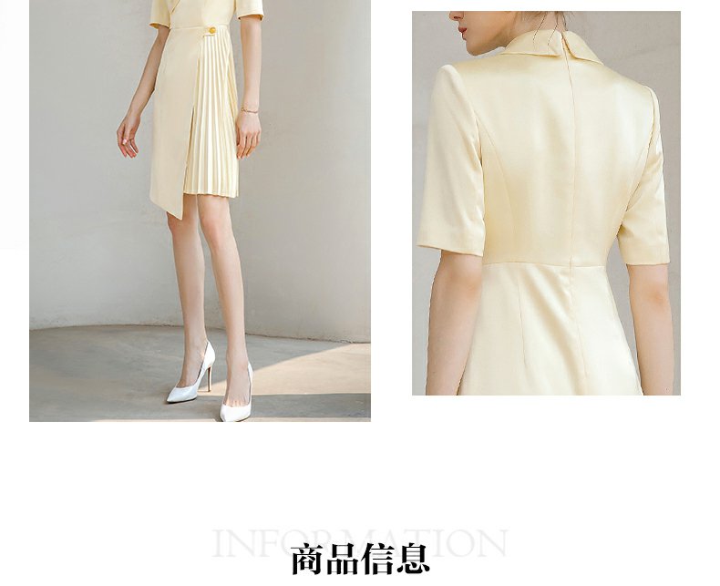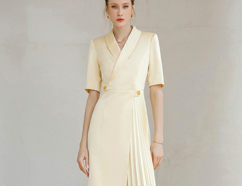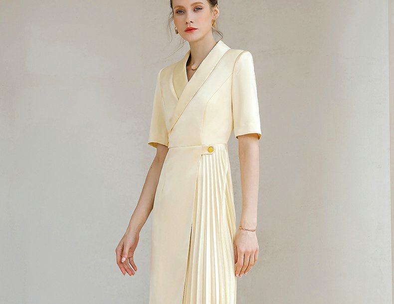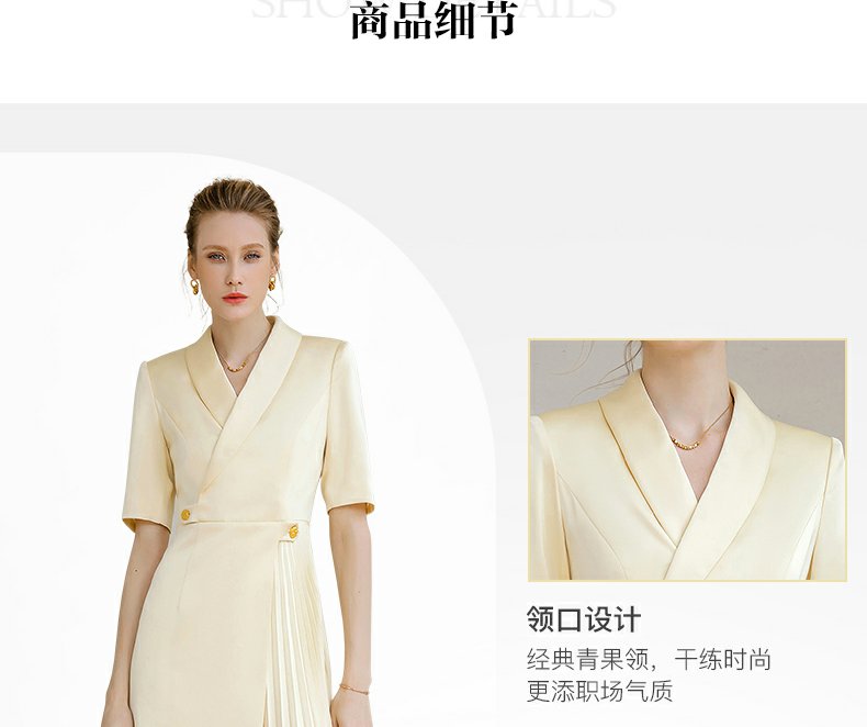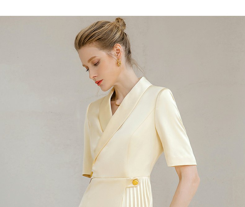 IWY/高端职业连衣裙女长袖西装裙轻奢夏季杏色气质法式百褶裙礼服232009Q1