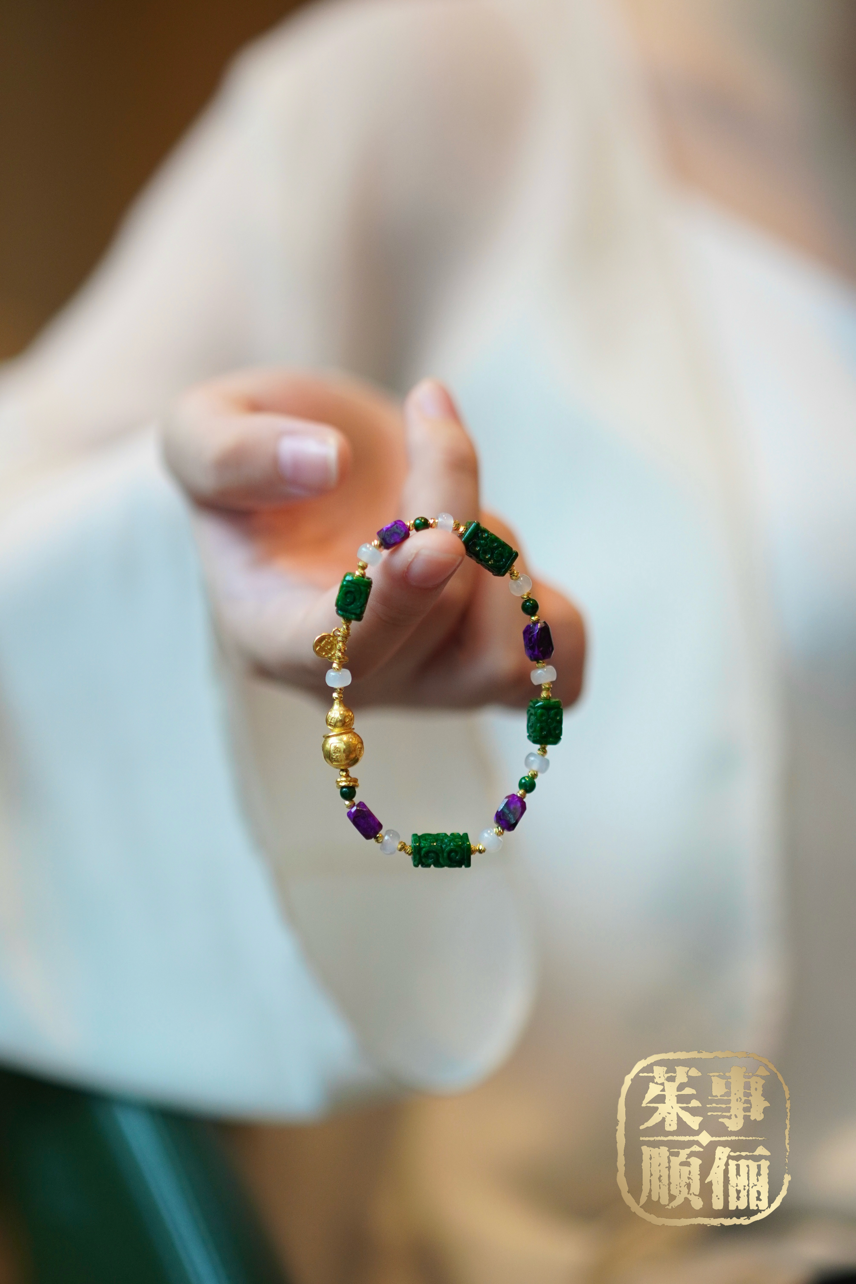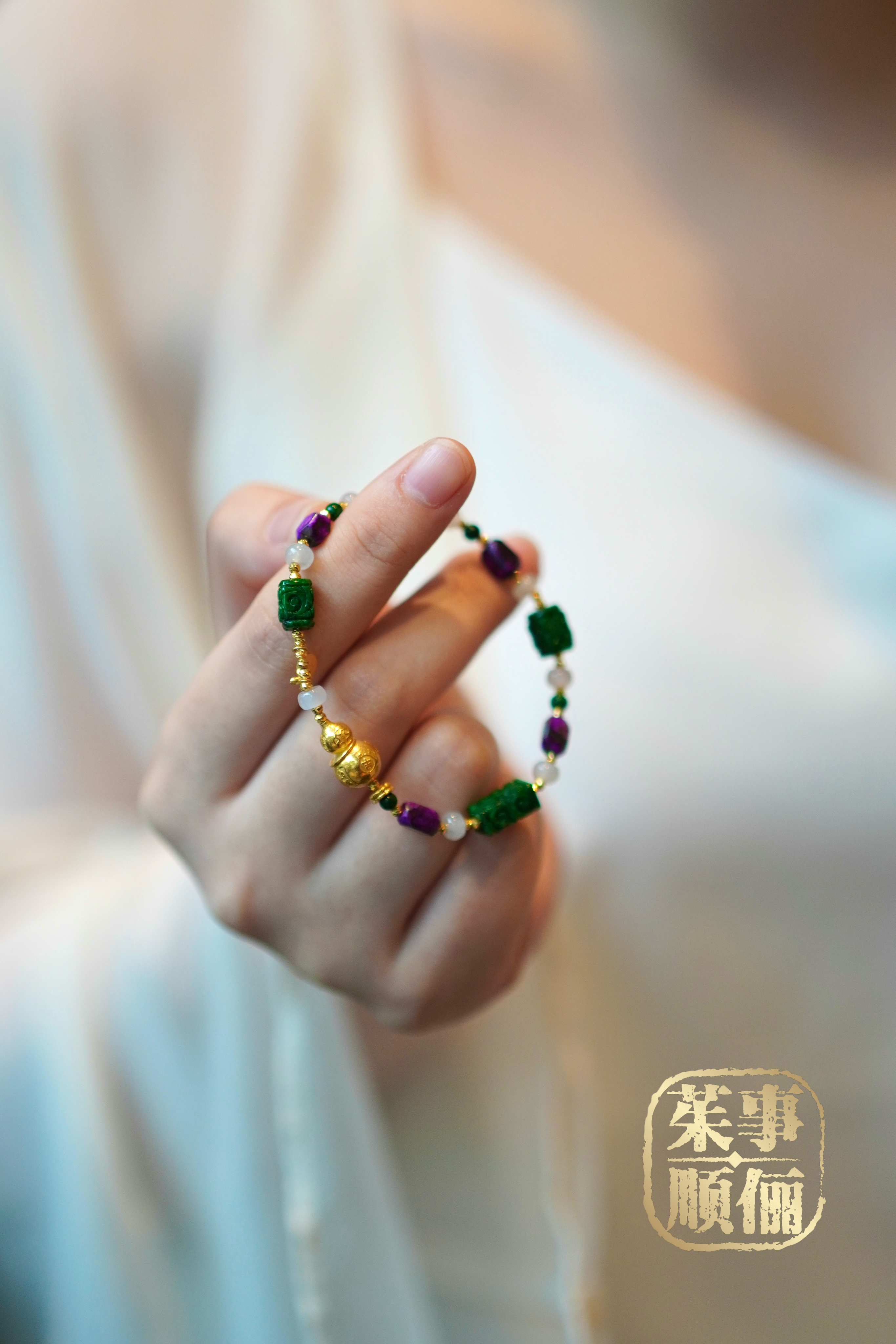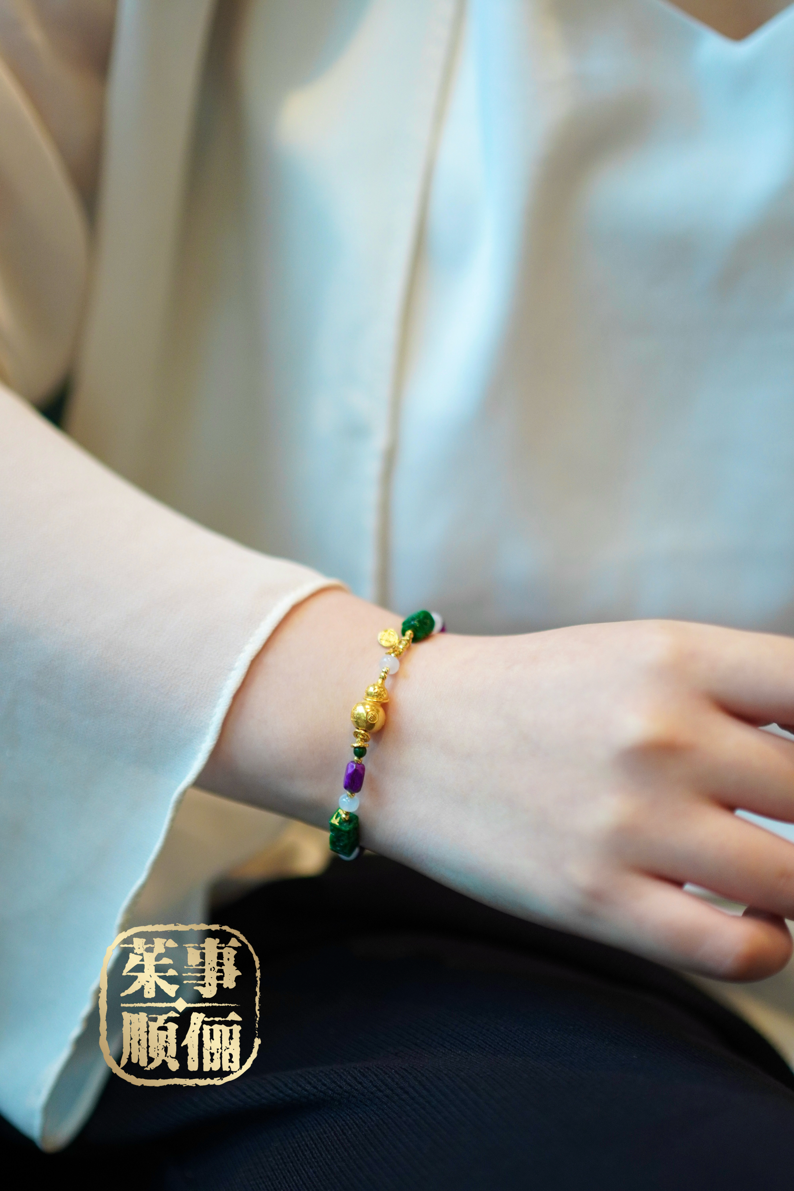 【茱事顺俪】18k黄金舒俱来翡翠葫芦手链