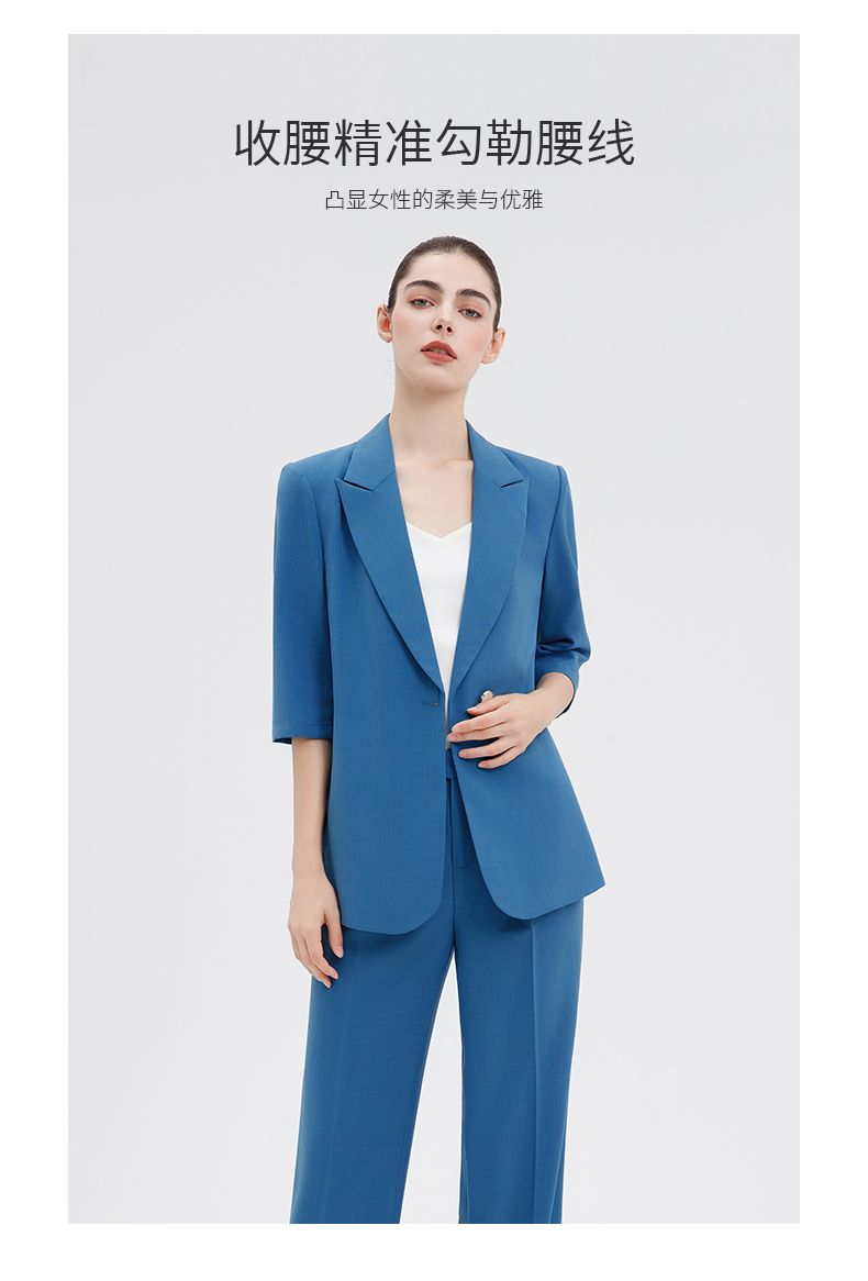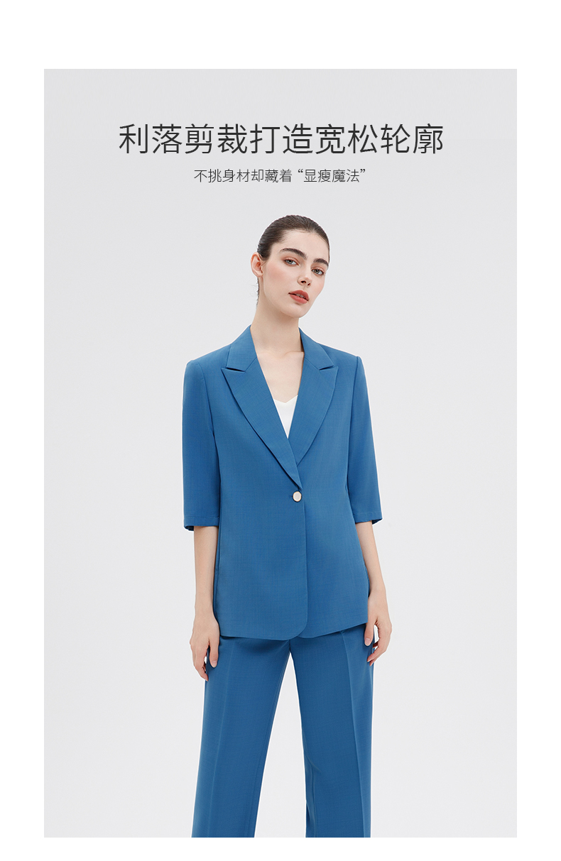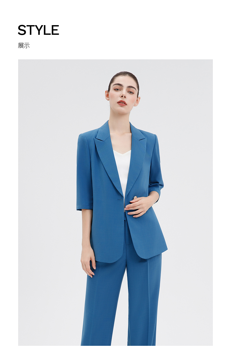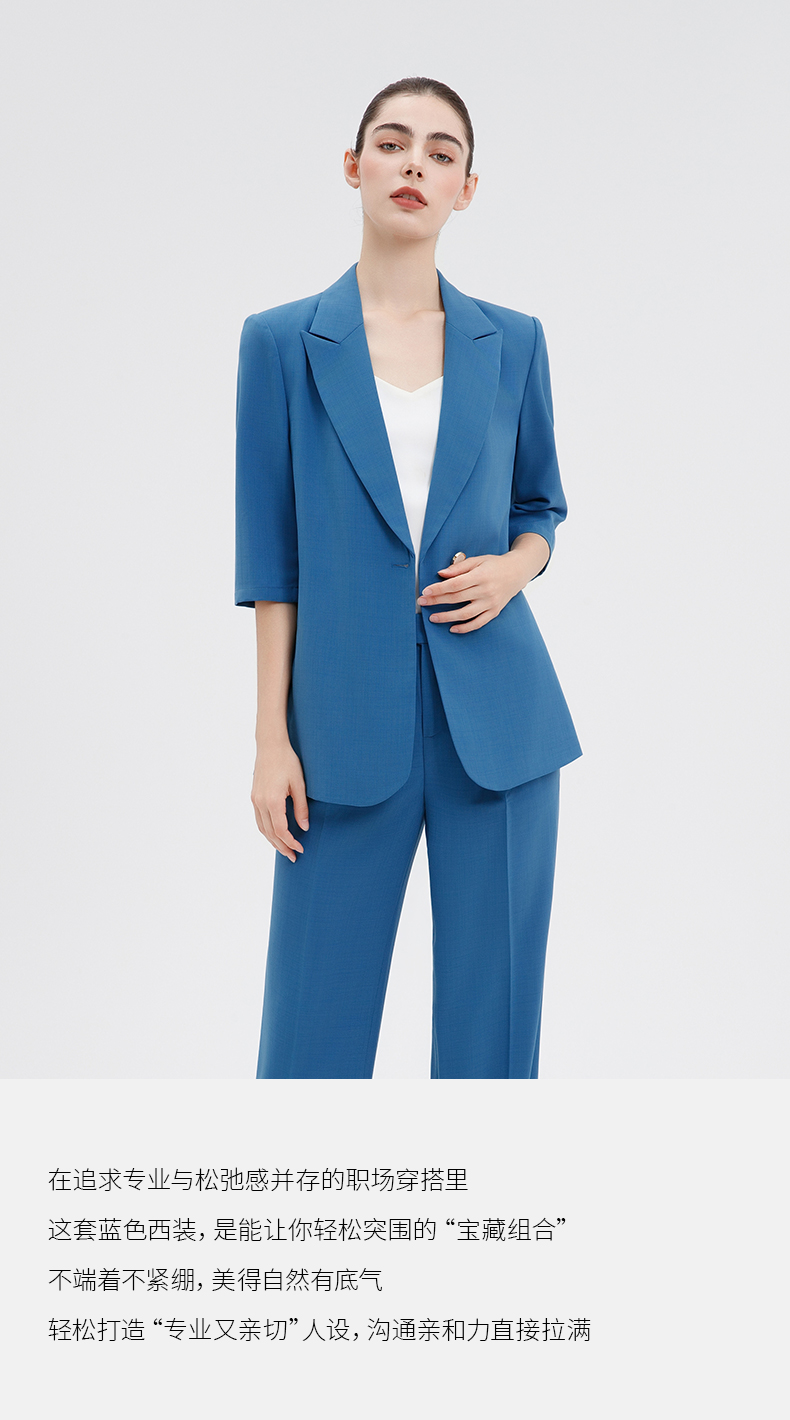 IWY/气质孔雀蓝西装套装休闲宽松主持人上镜职业装酒店经理正装