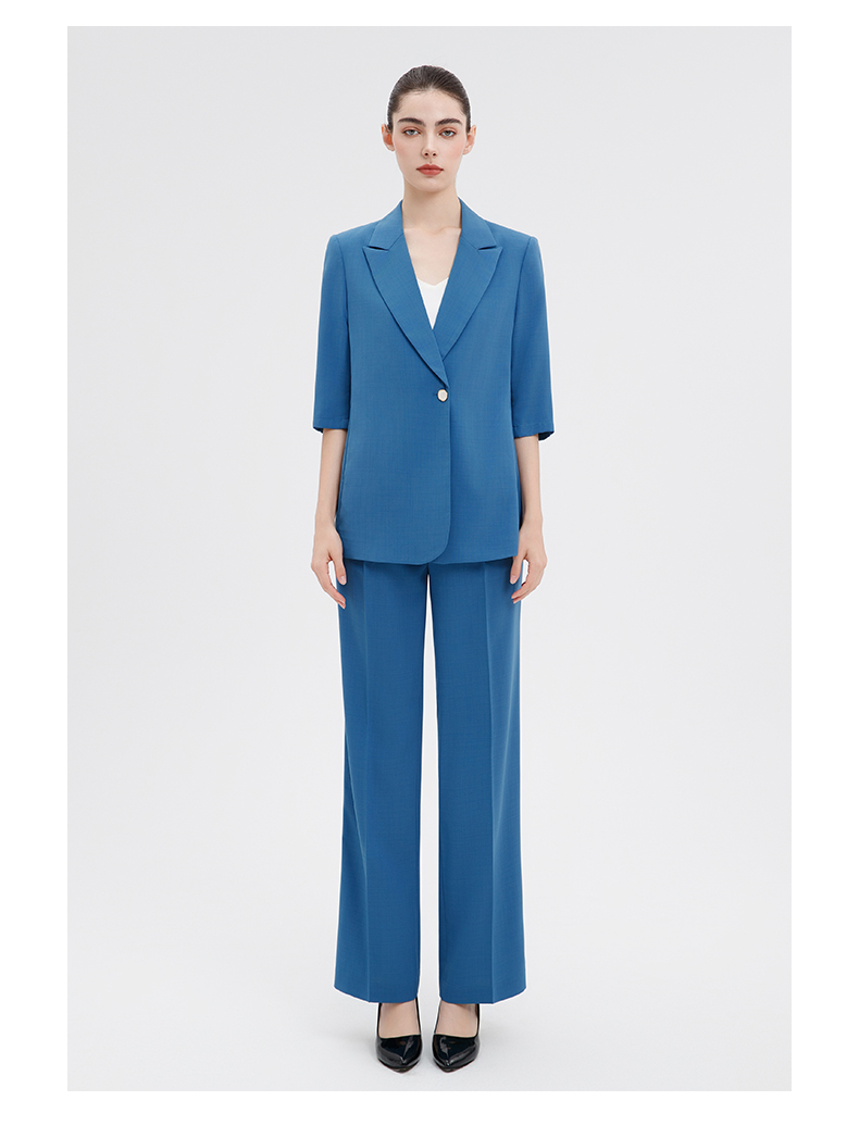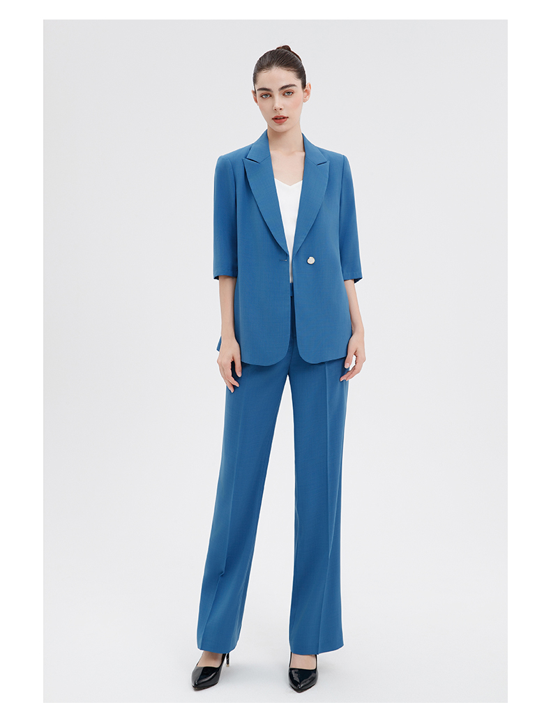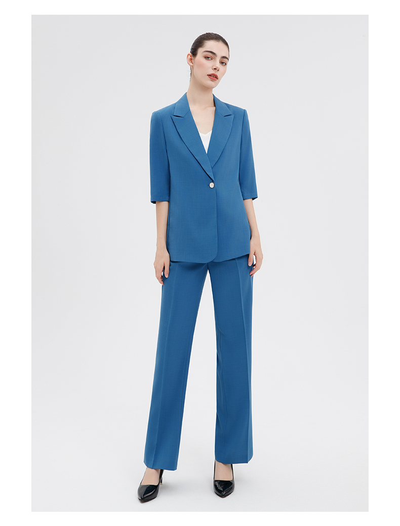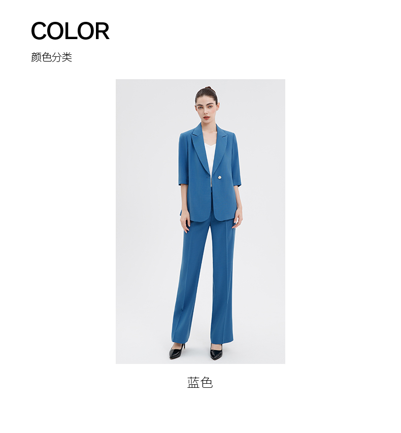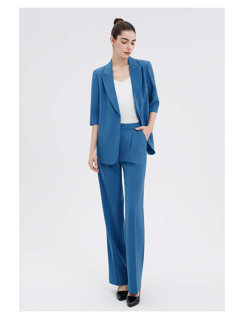 IWY/气质孔雀蓝西装套装休闲宽松主持人上镜职业装酒店经理正装