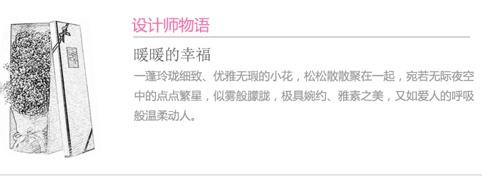 包装:白色磨砂玻璃纸单面包装,粉色蝴蝶结修饰 ,长方形礼盒装