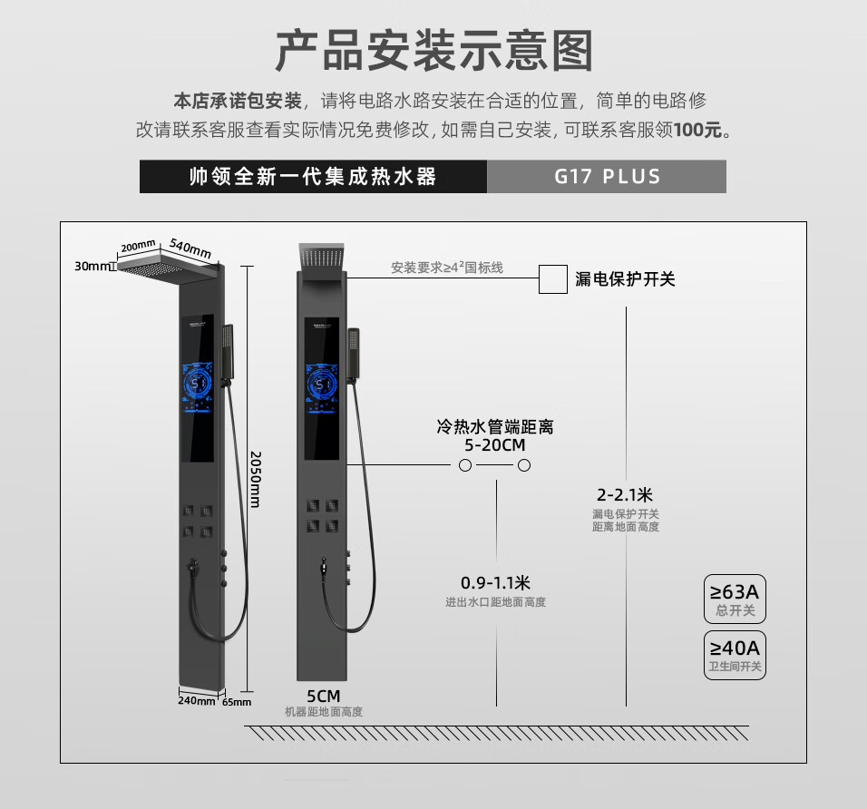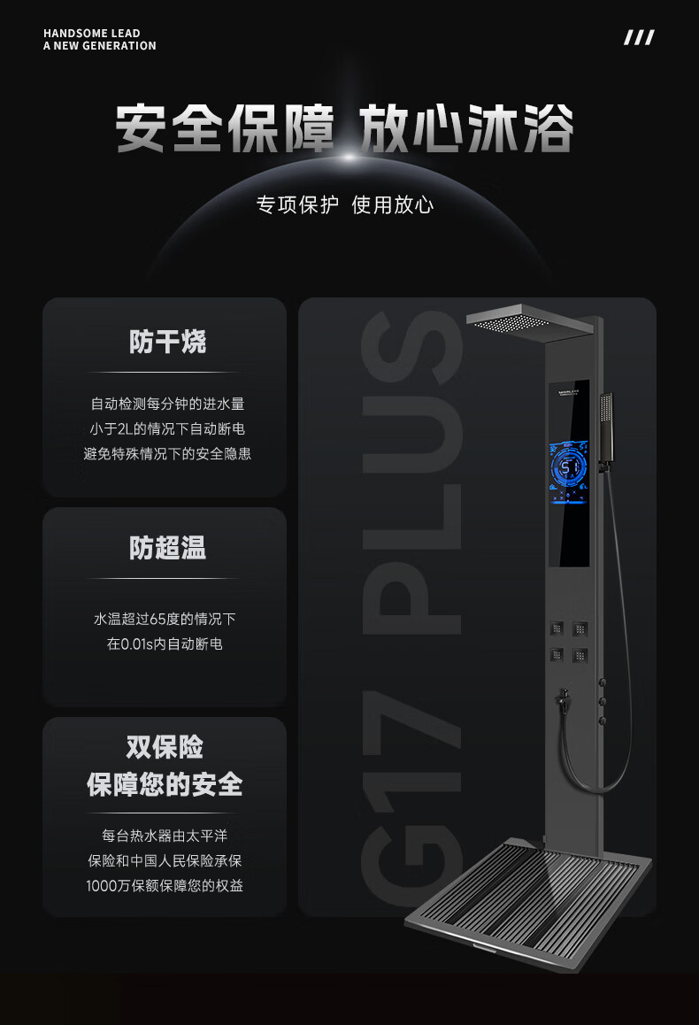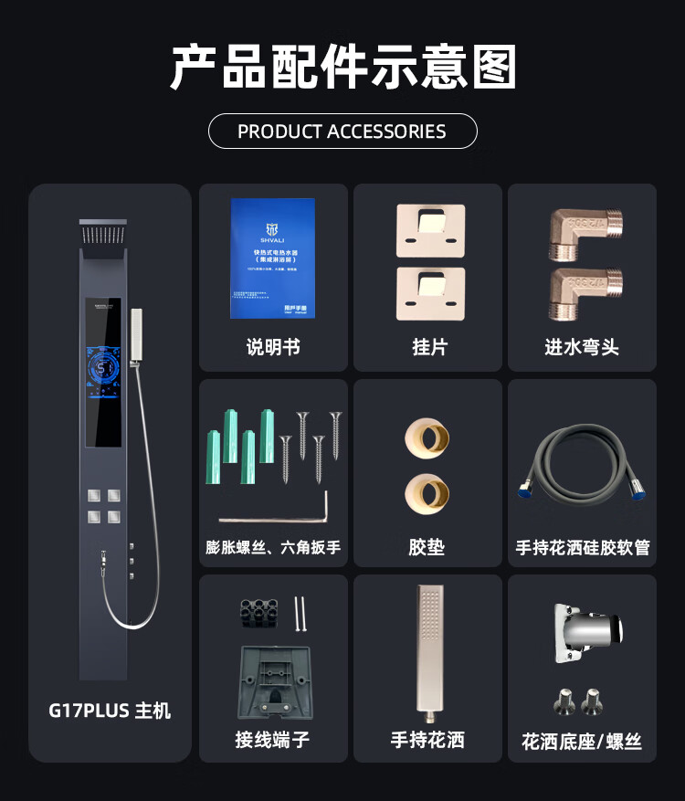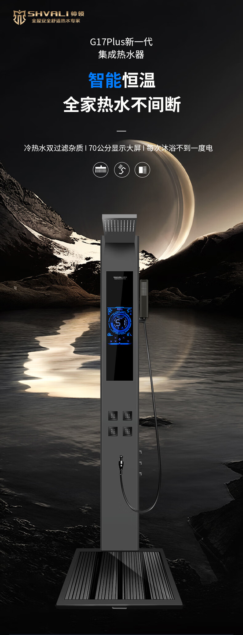 帅领集成集成热水器花洒一体机G17家用即热式免储水智能变频节能恒温洗澡大水量过水热淋浴屏电热水器 【太空灰2米】+过滤+节能盘