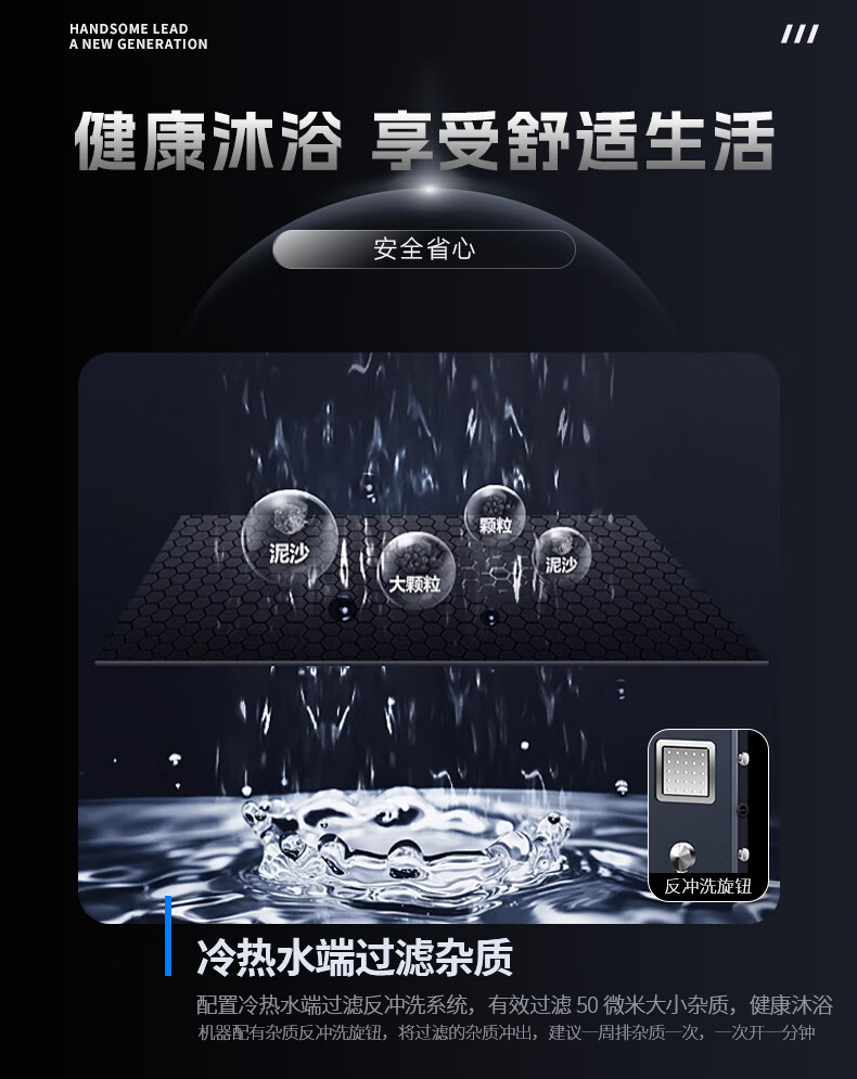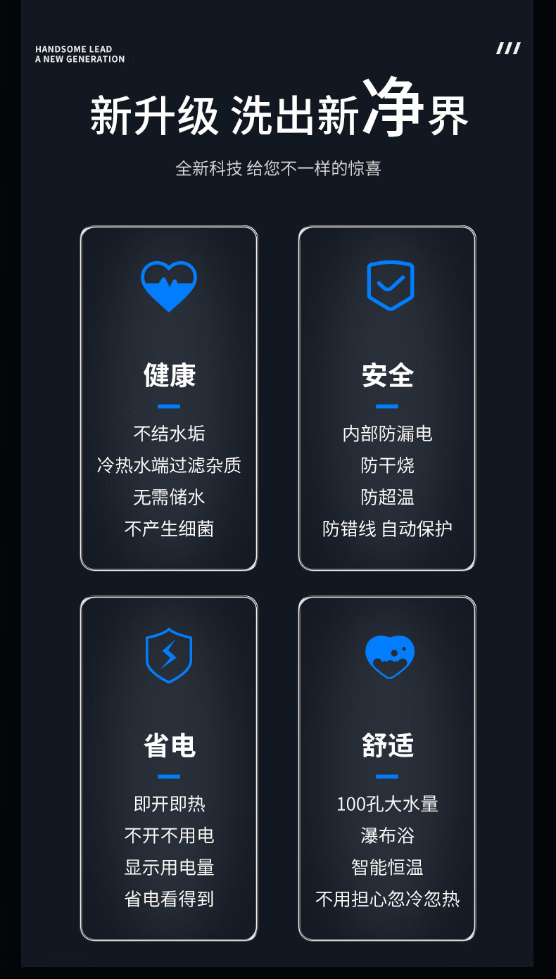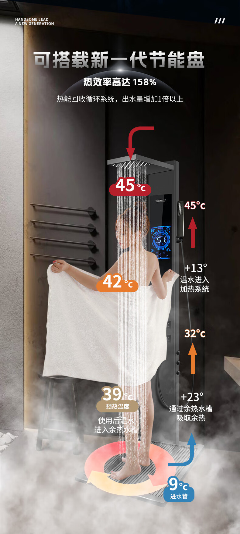 帅领集成集成热水器花洒一体机G17家用即热式免储水智能变频节能恒温洗澡大水量过水热淋浴屏电热水器 【太空灰2米】+过滤+节能盘