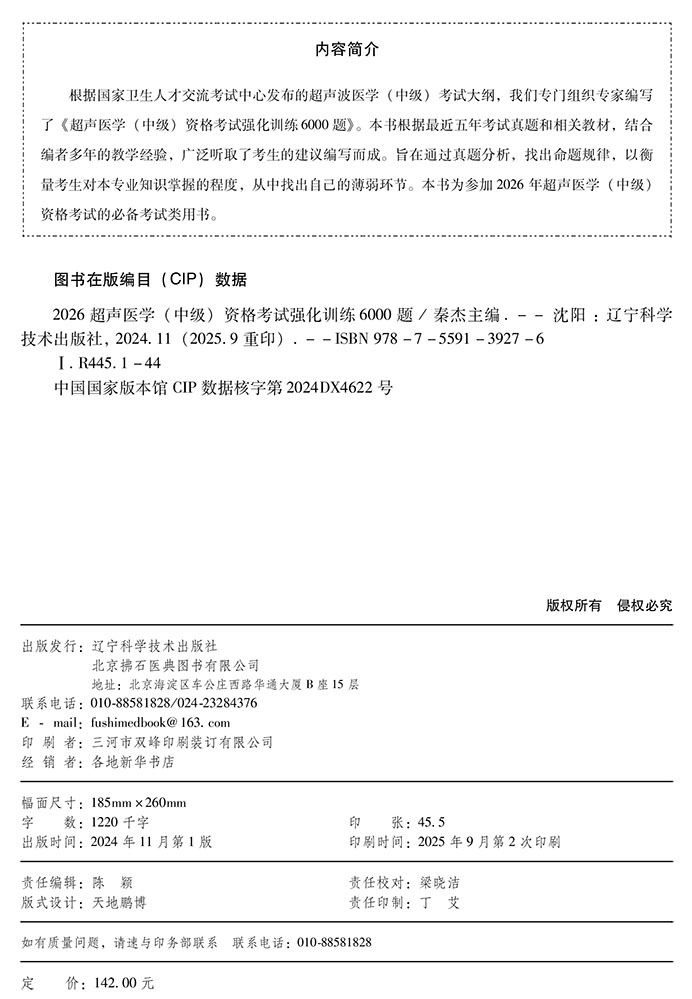 书名:2026超声医学(中级)资格考试强化训练6000题 全国初中级卫生专业技术资格考试辅导丛书
