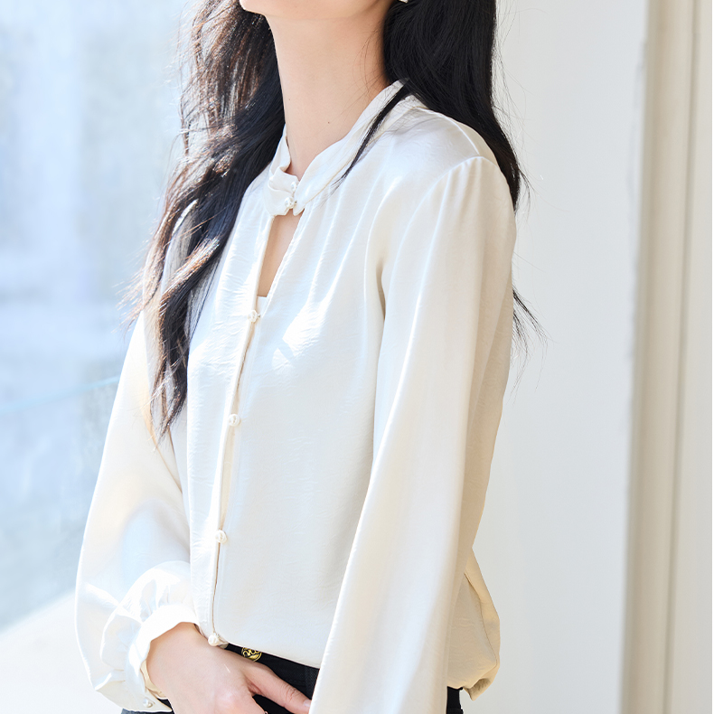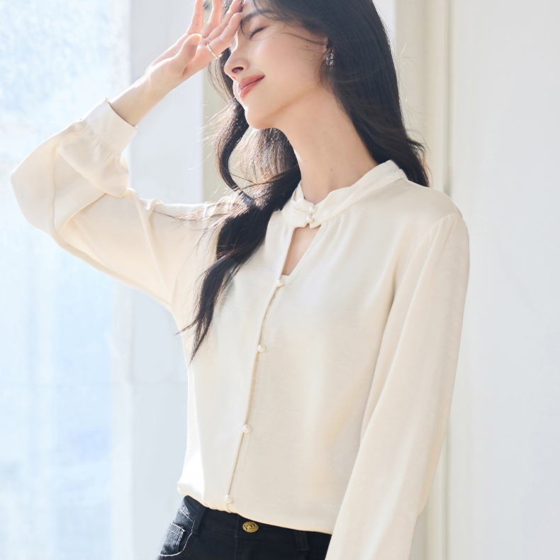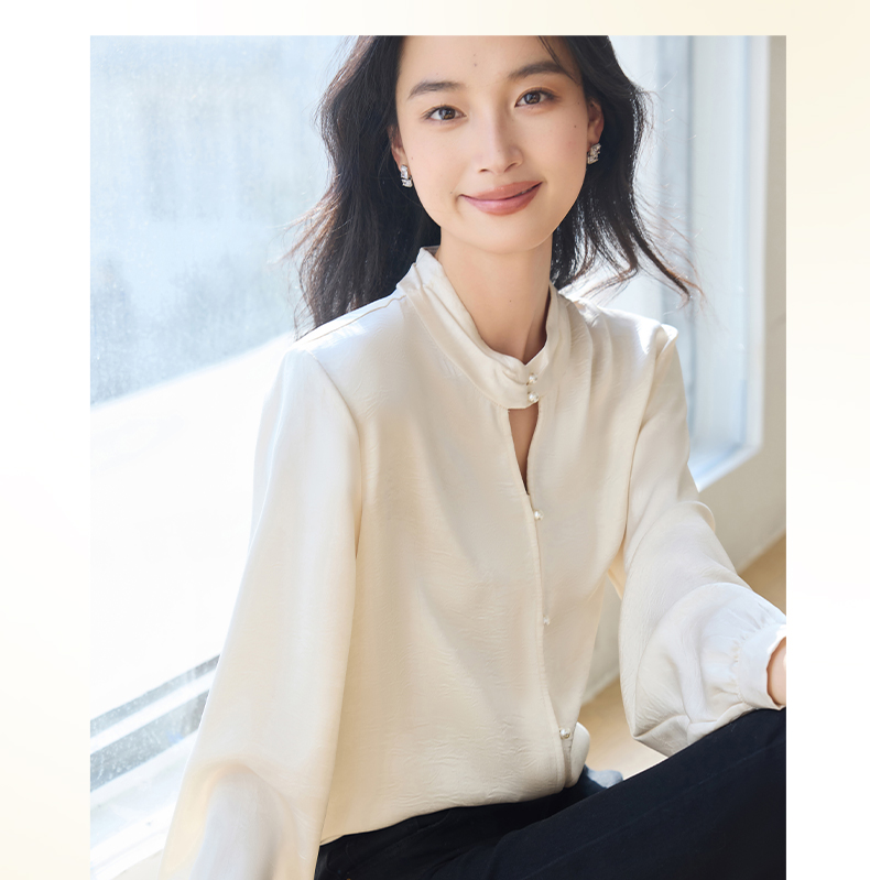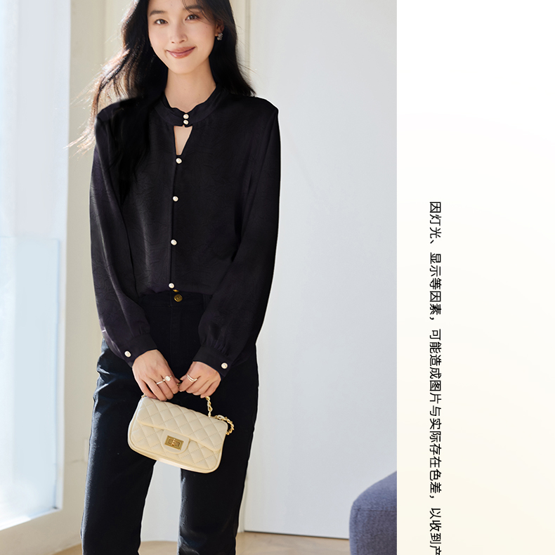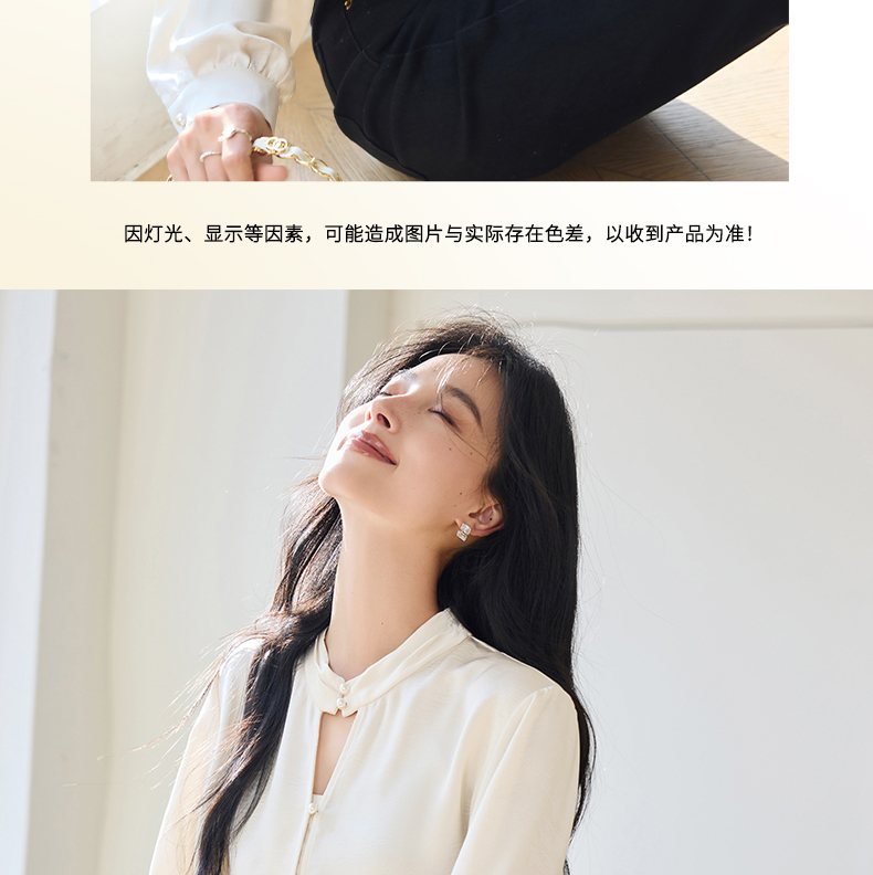 VICTORIA&VERA春季“印象西湖”设计感国风仿醋酸肌理感镂空新中式衬衫