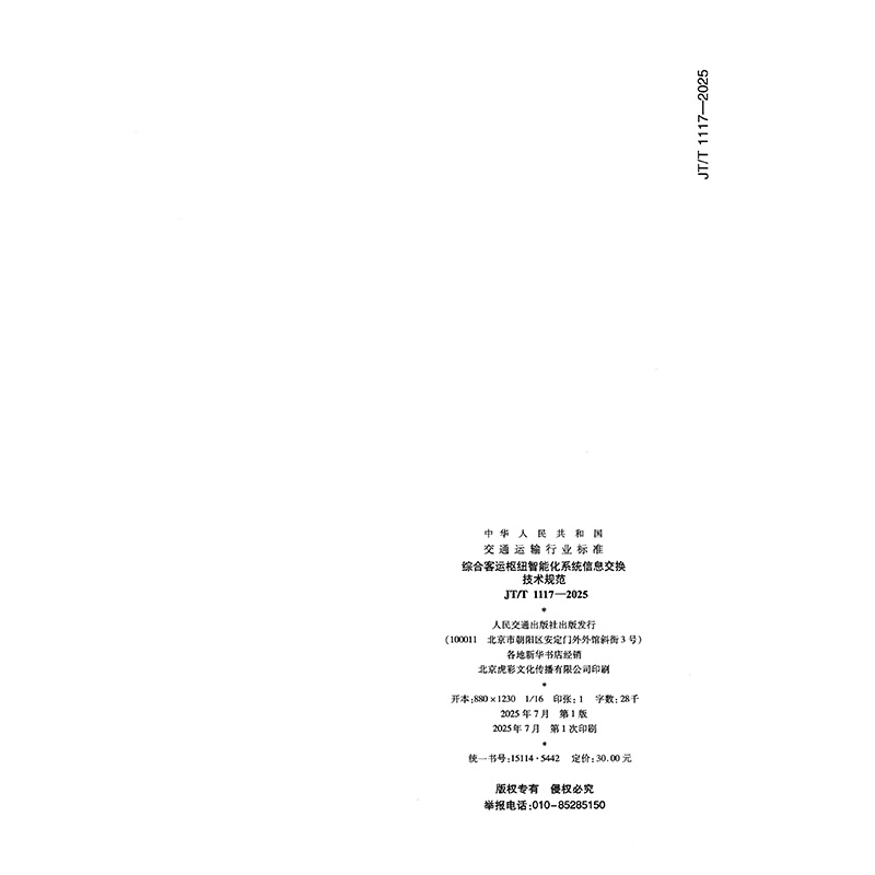 书名:综合客运枢纽智能化系统信息交换技术规范(JT/T 1117—2025)