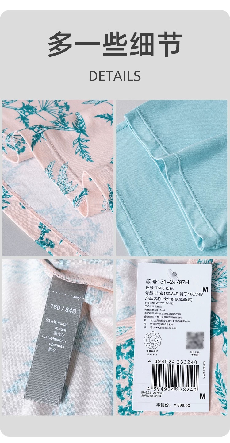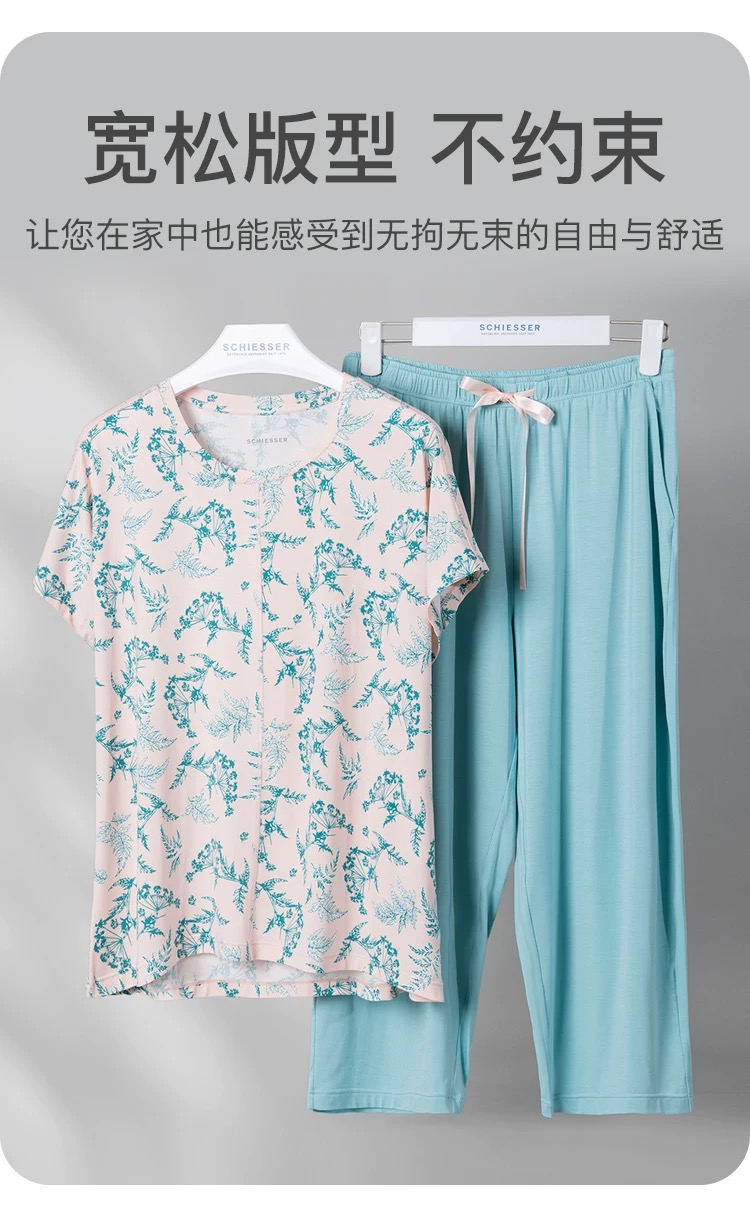 【经典莫代尔】SCHIESSER德国舒雅女士莫代尔短袖七分裤套装31/24797H