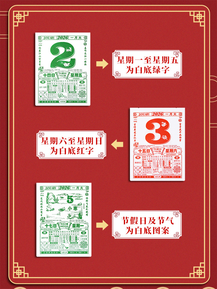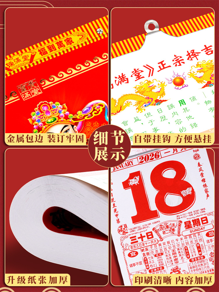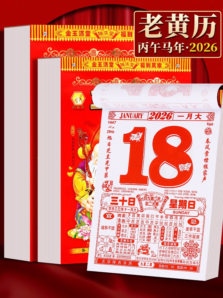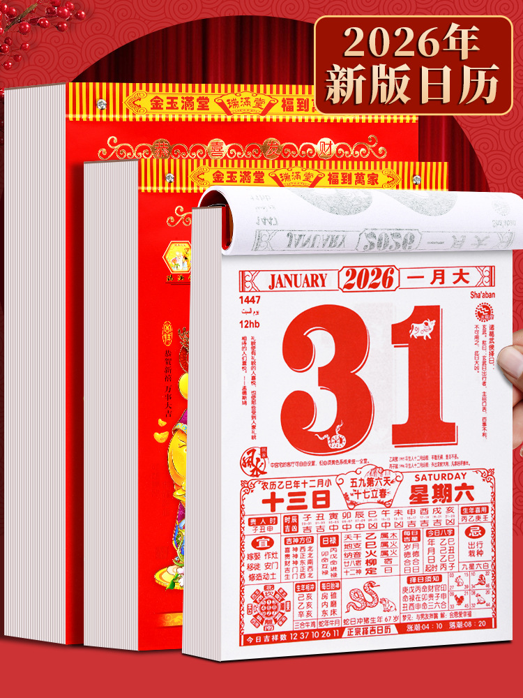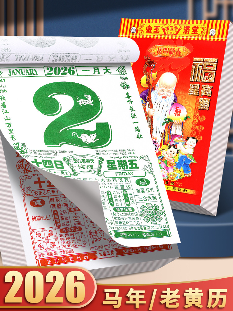 【新版日历!2026年老黄历】赠送挂钩,方便悬挂,马年日历丙午年传统挂历大号挂墙挂历老式马年手撕万年历。rd