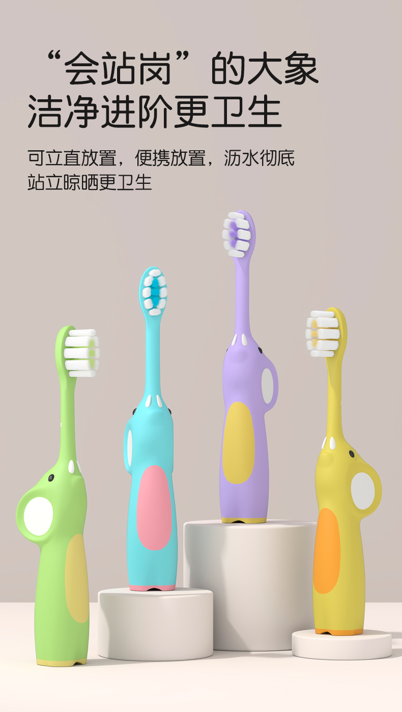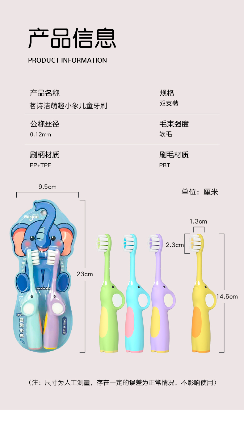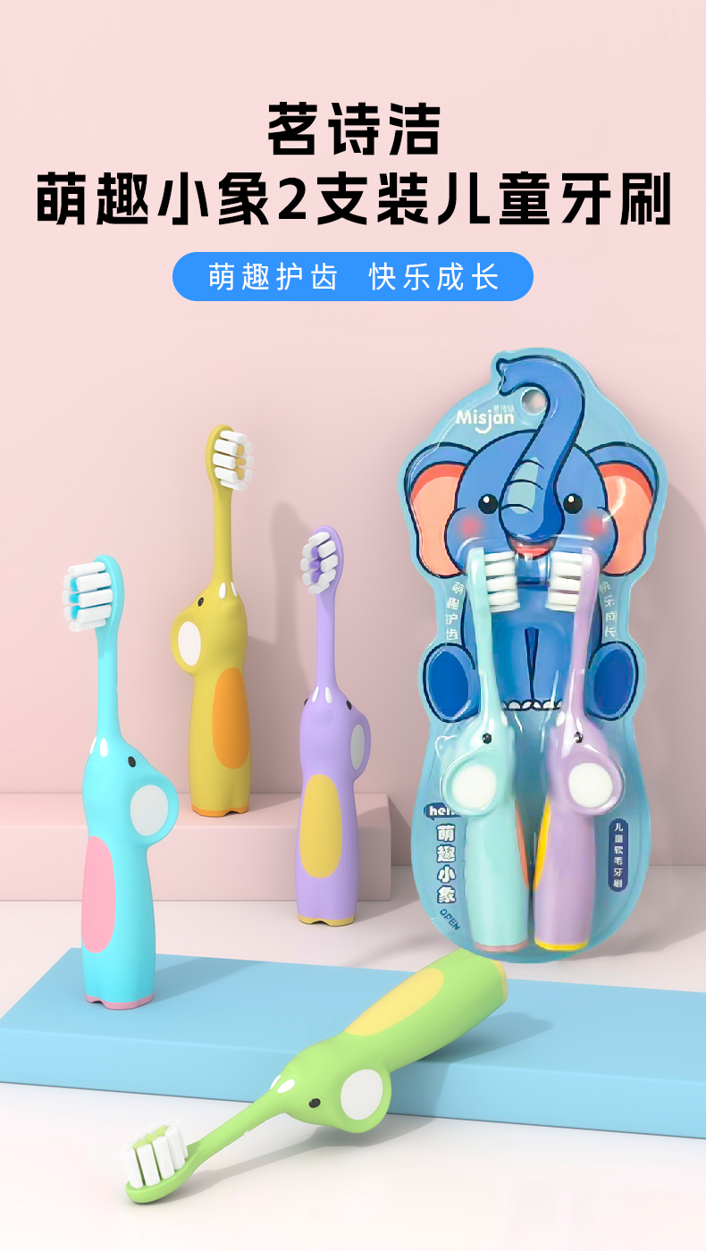 茗诗洁萌趣小象2支装儿童牙刷-蓝色-绿色(2507104-2507105)