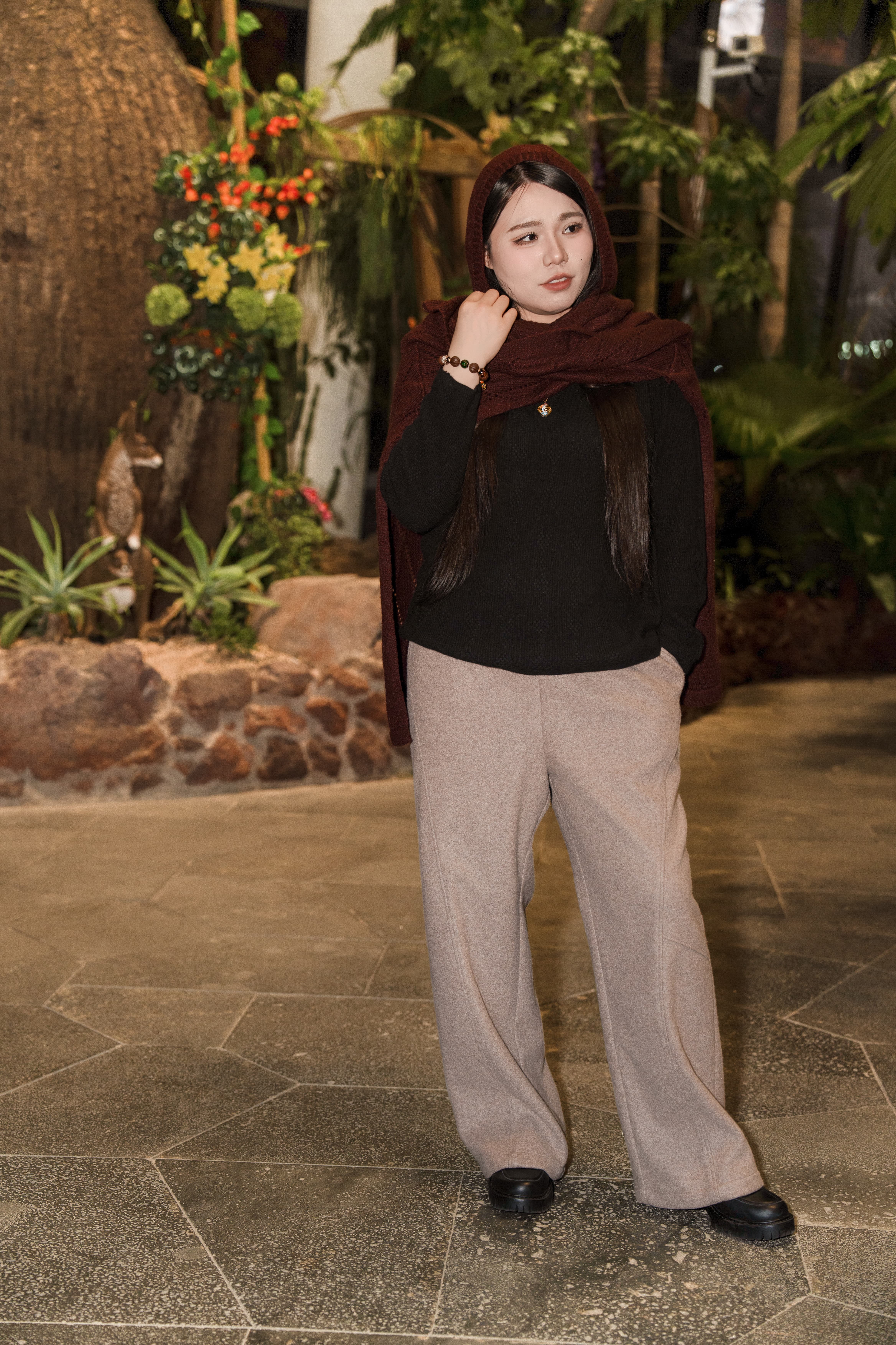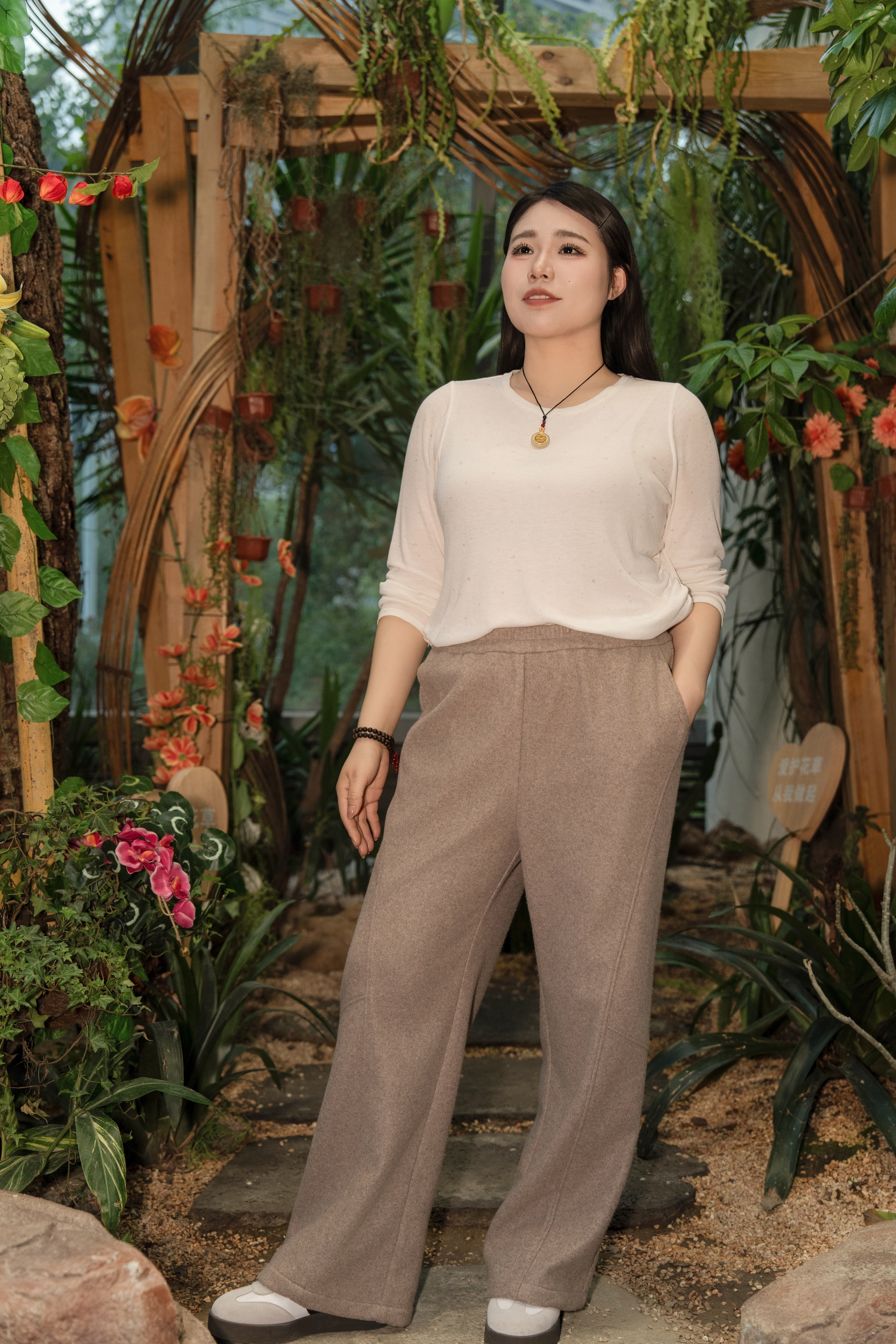 现货!24小时发货!【羊毛混纺直筒裤】松紧腰,宽松阔腿休闲裤,版型立挺显瘦,耐磨好穿不变形,浅卡其色百搭不挑人,成分:3.4%羊毛 70%聚酯纤维 15.7%再生纤维素纤维 5.8%腈纶 5.1%锦纶