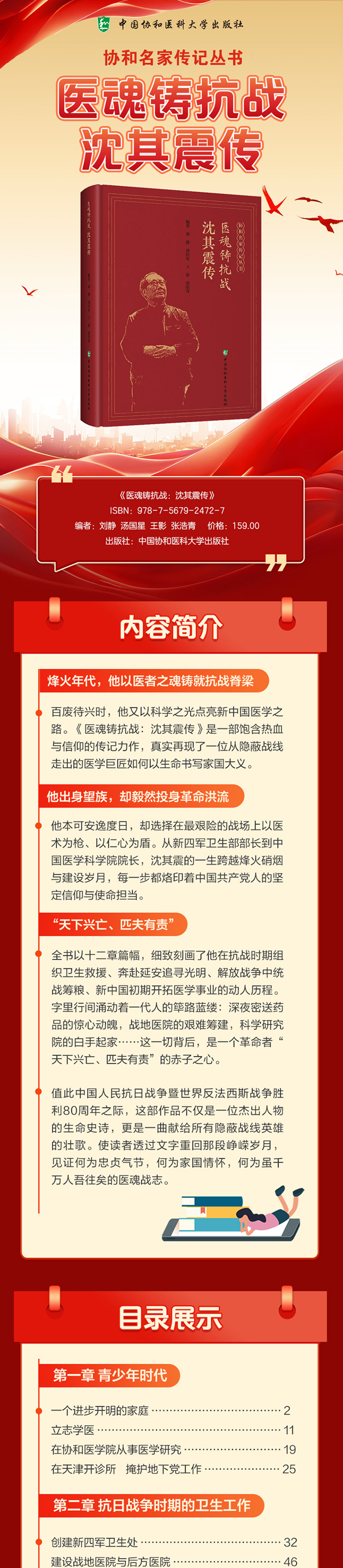 医魂铸抗战 沈其震传 刘静 汤国星 王影 张浩青 全书以十二章篇幅细致刻画了他在抗战时期组织卫生救援等 中国协和医科大学出版社