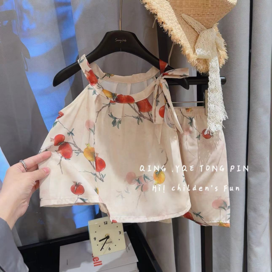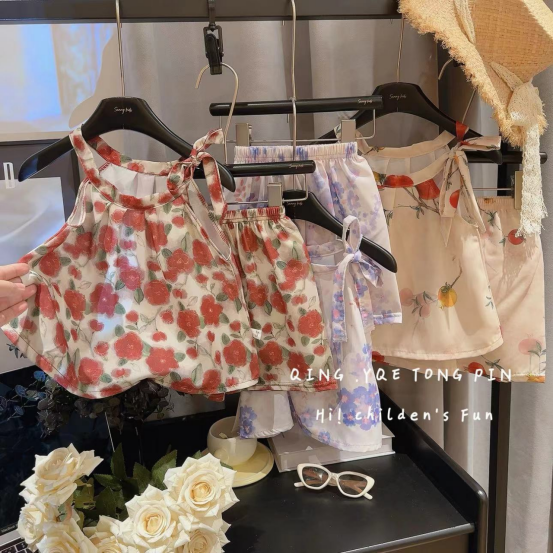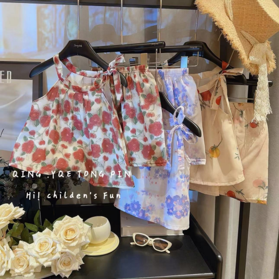 👏女童国风天丝麻吊带套装👏时尚超百搭‼️适宜各种场合nice😍 🍃🍃A类#夏天没有比吊带休闲套装更舒服的穿搭了‼️ ✅简单大方又可爱,实用和颜值都具备了 ✅出门游玩打卡拍照太上镜了~都会爱了爱了 💞 女童国风吊带两件套