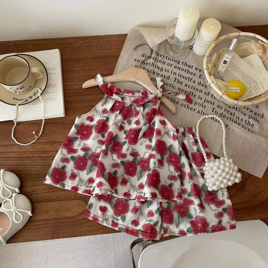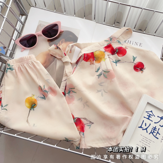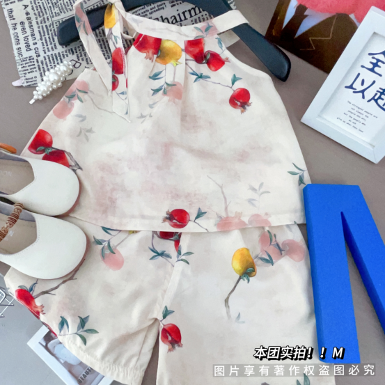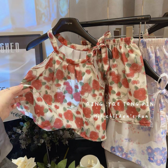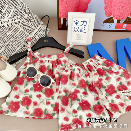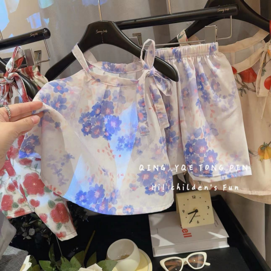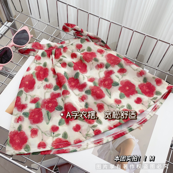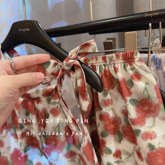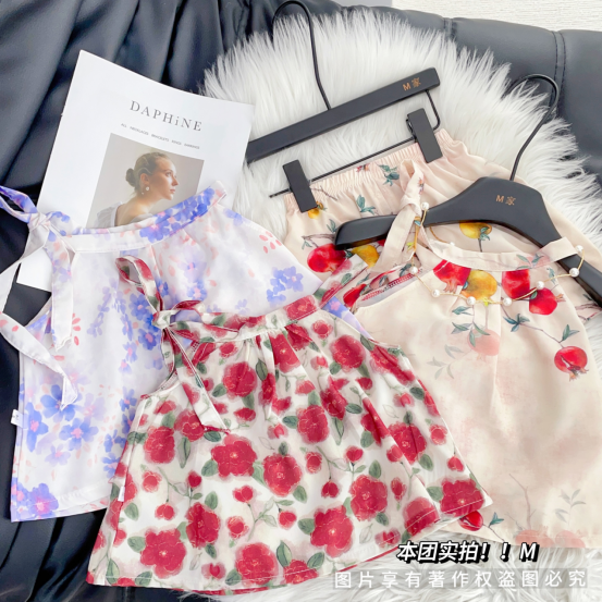 好看的女童新款晕染国风吊带两件套! 清新晕染油画风,为夏天增添一抹亮色! 女童最爱,甜美又可爱,穿上它,秒变小公主