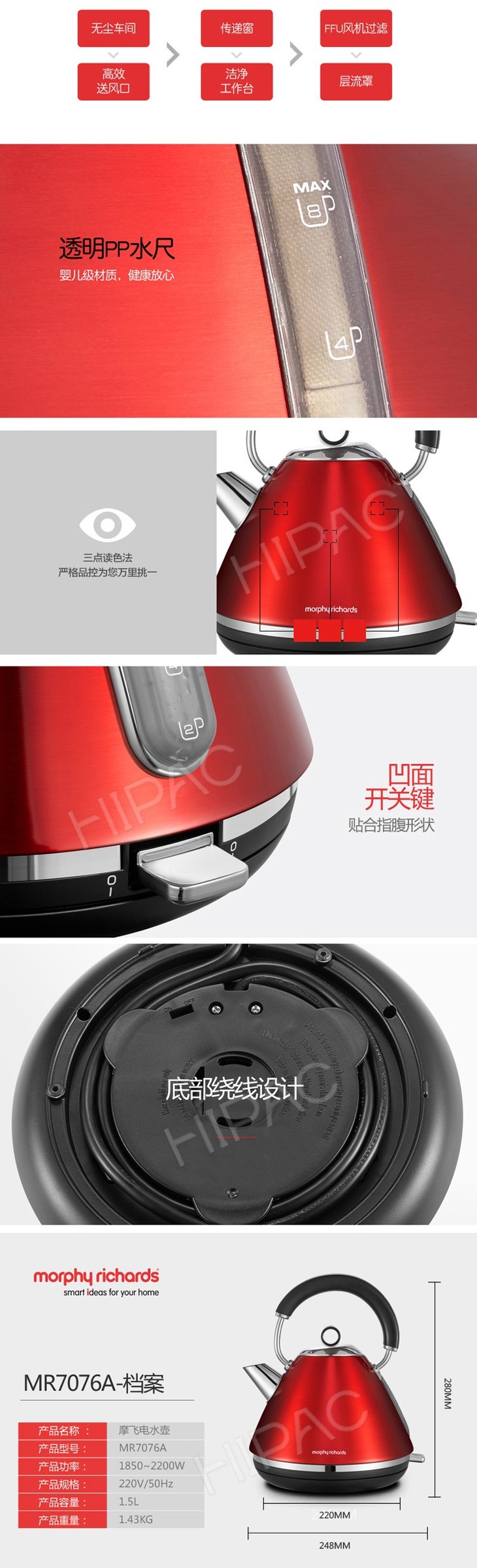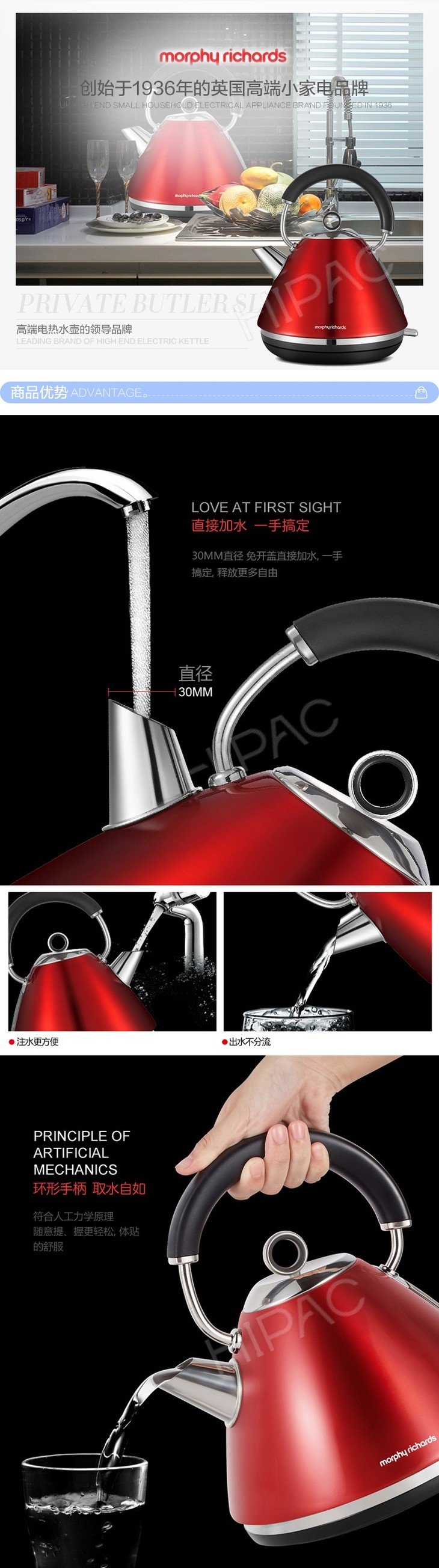【一般贸易】英国 摩飞MR7076电水壶(红色)