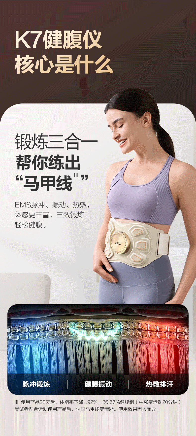 SKG运动腰带K7燃脂腰部震动甩脂机按摩腰带塑腰带抖动腹部健身仪