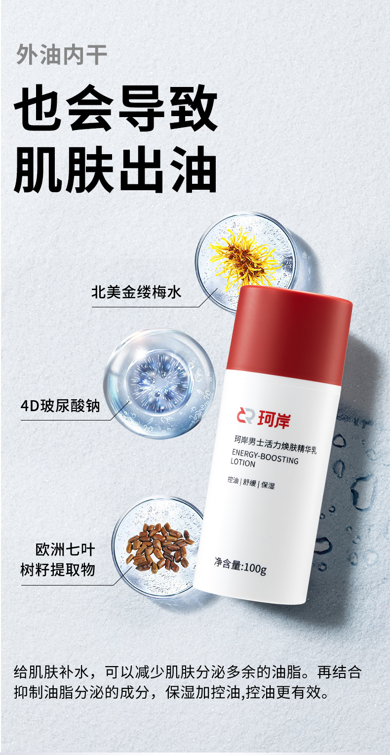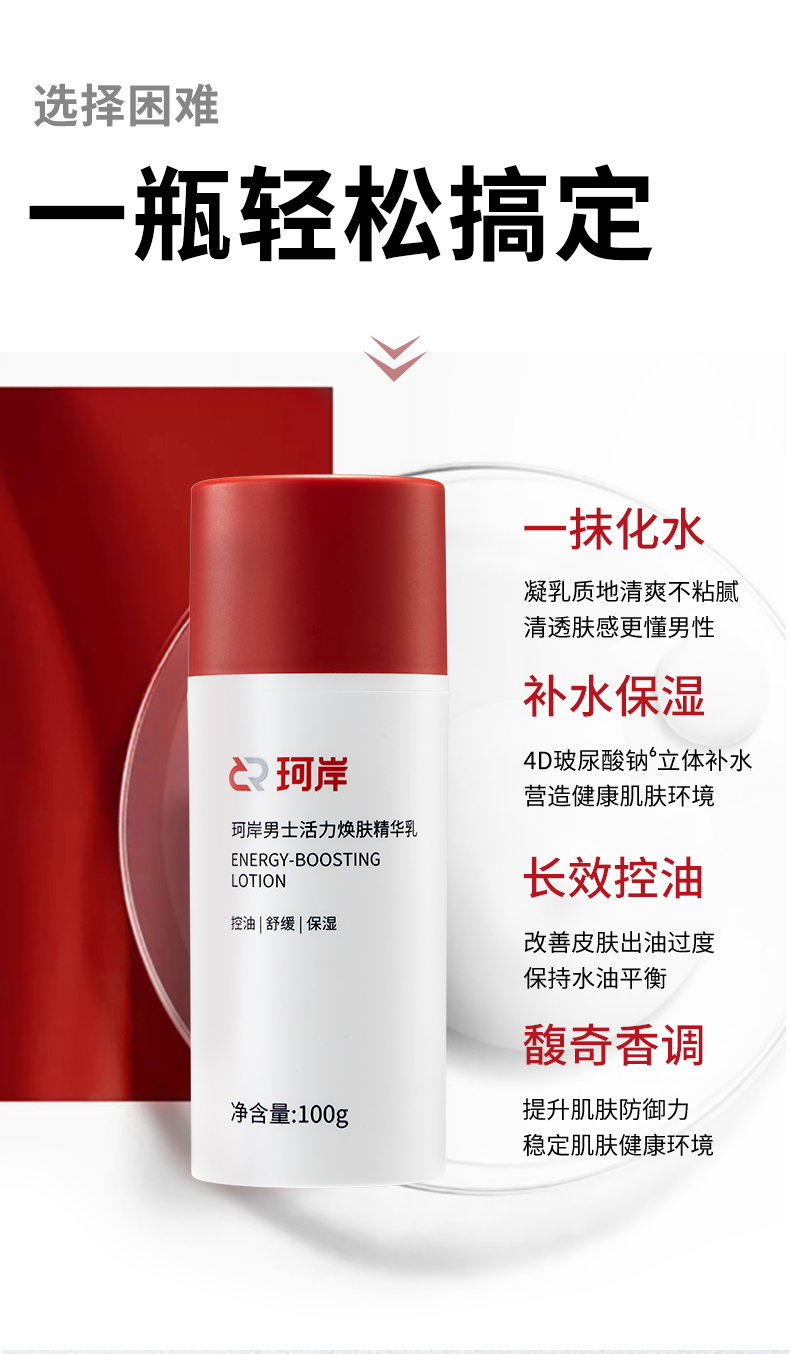 【华熙直营】珂岸男士面霜乳液保湿补水护肤品控油精华脸部滋润精华乳100g