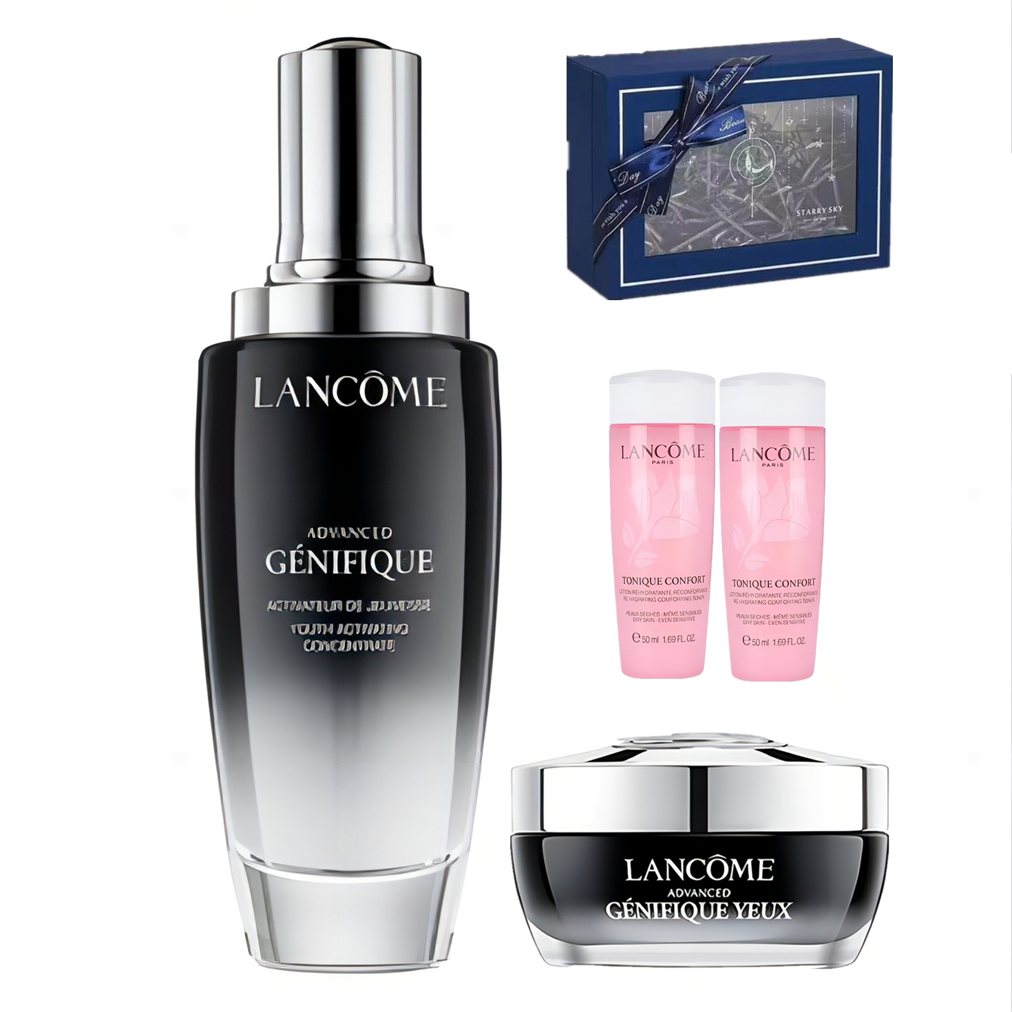 【送兰蔻粉水50ml*2】无盒法国 Lancome 兰蔻 小黑瓶 精华肌底液 100ml+小黑瓶发光眼霜 新版 15ml