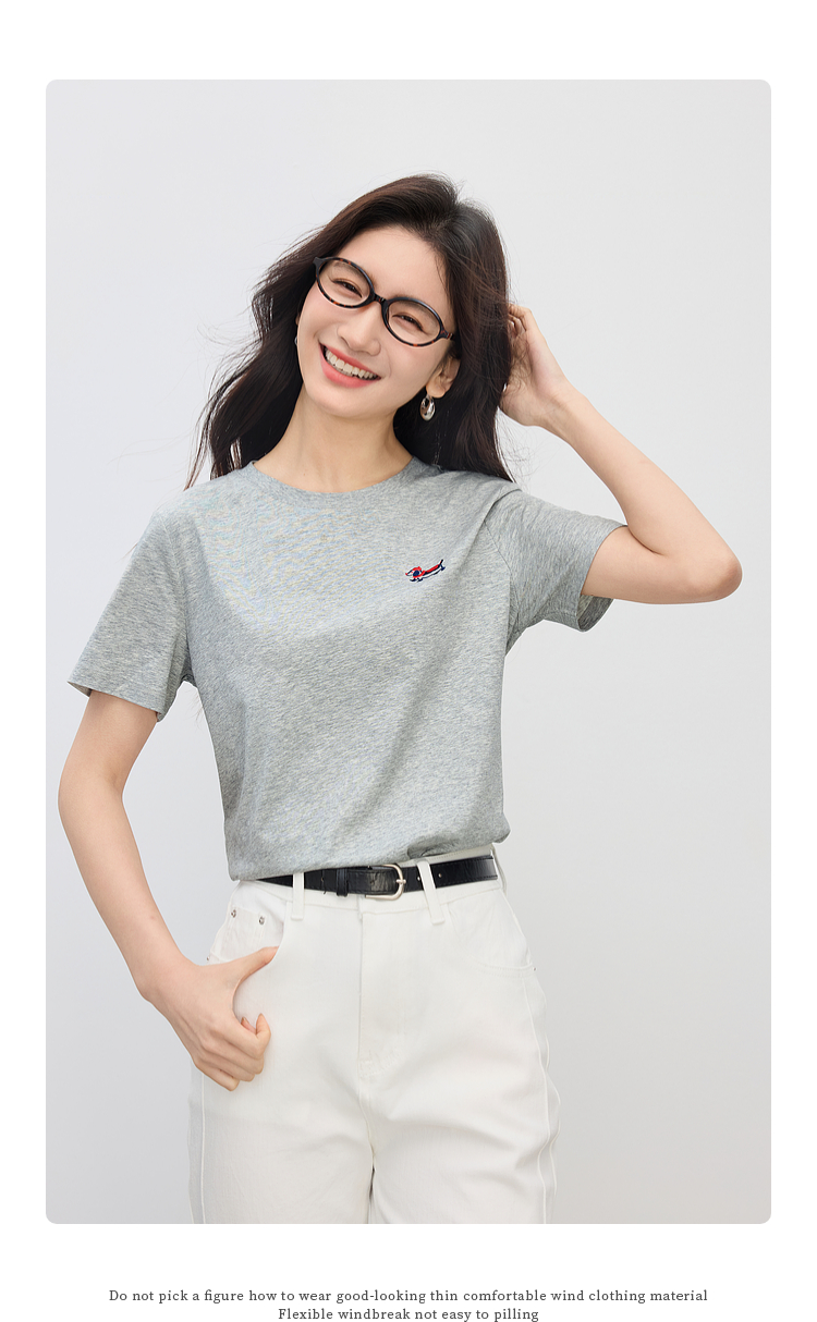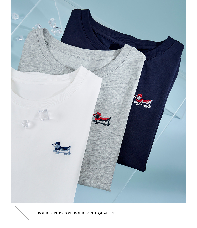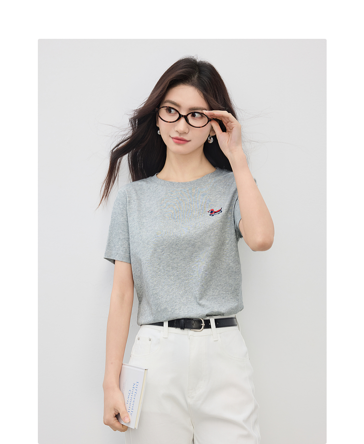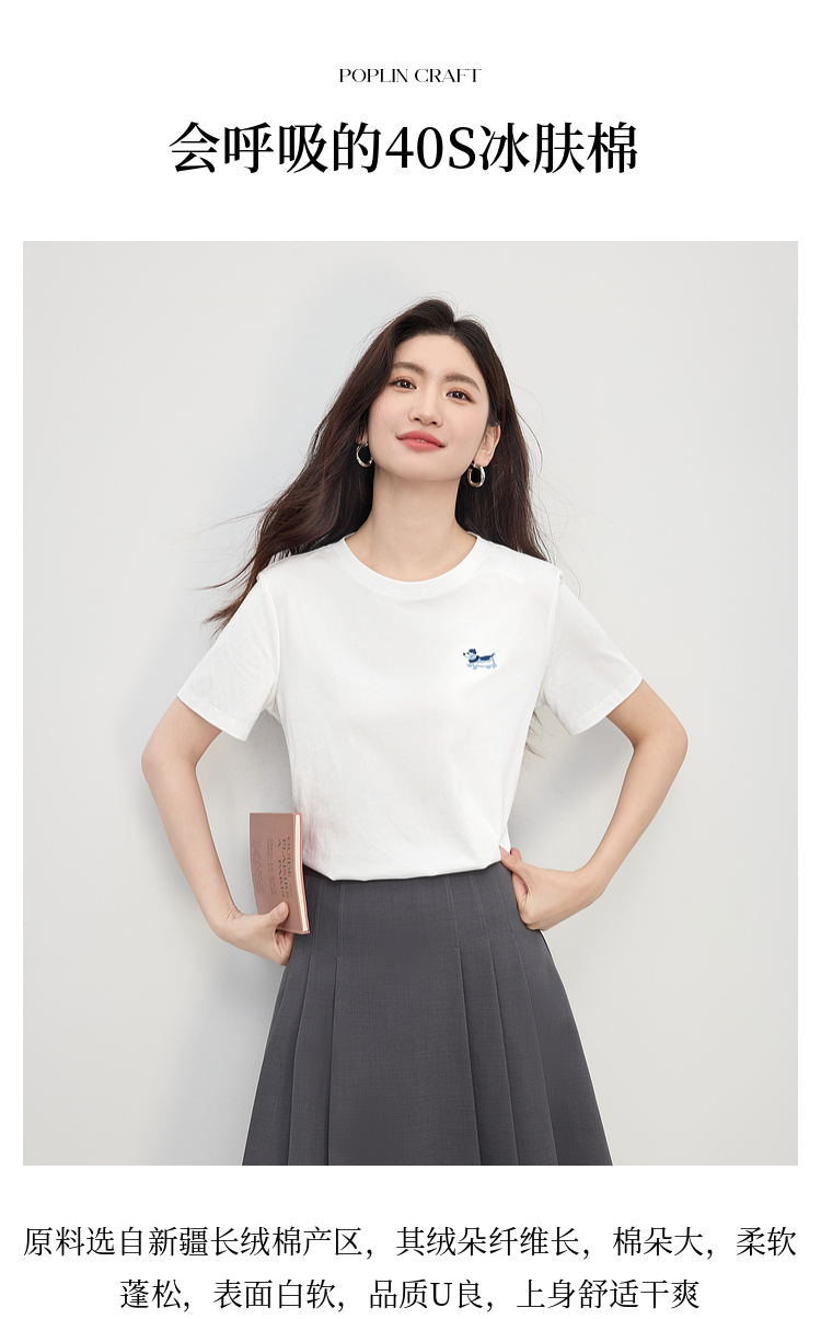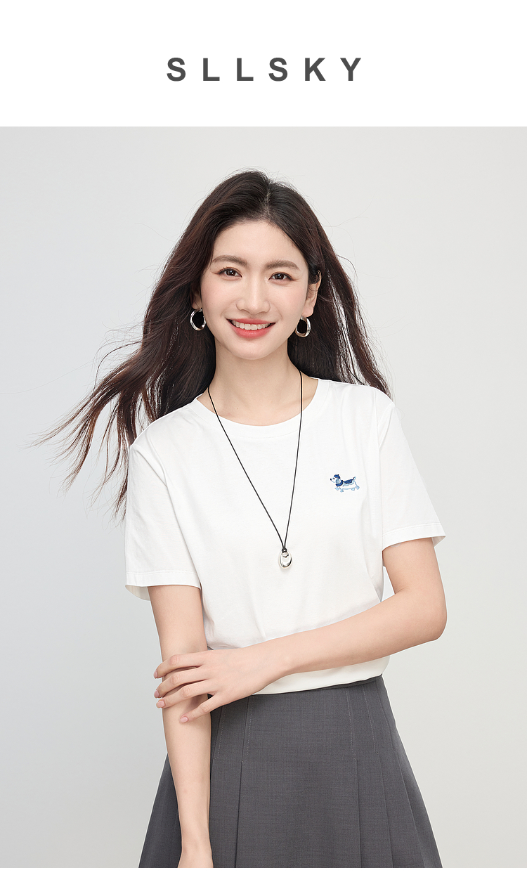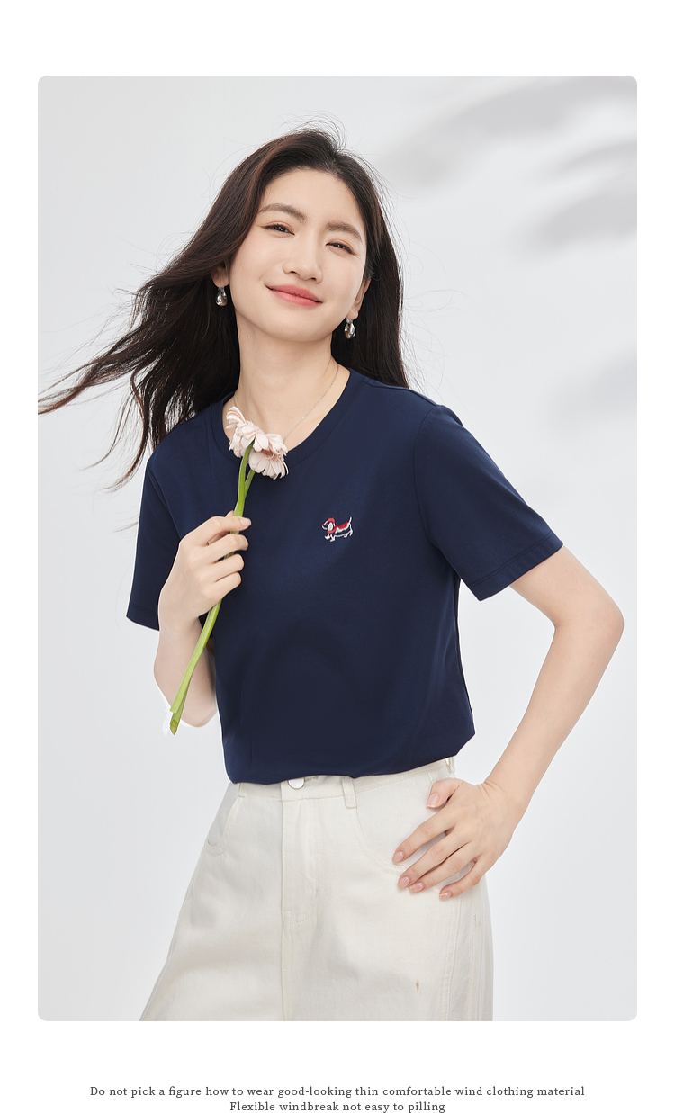 【周末秒杀】熙世界腊肠小狗刺绣T恤女短袖2025夏季新款清爽百搭气质圆领上衣