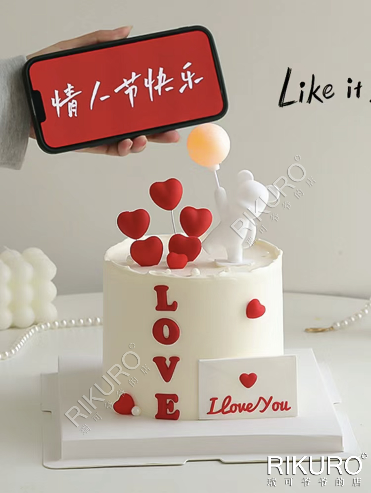 3】表面装饰:告白小熊为烘焙饰品,内有灯带可亮,不可食用。